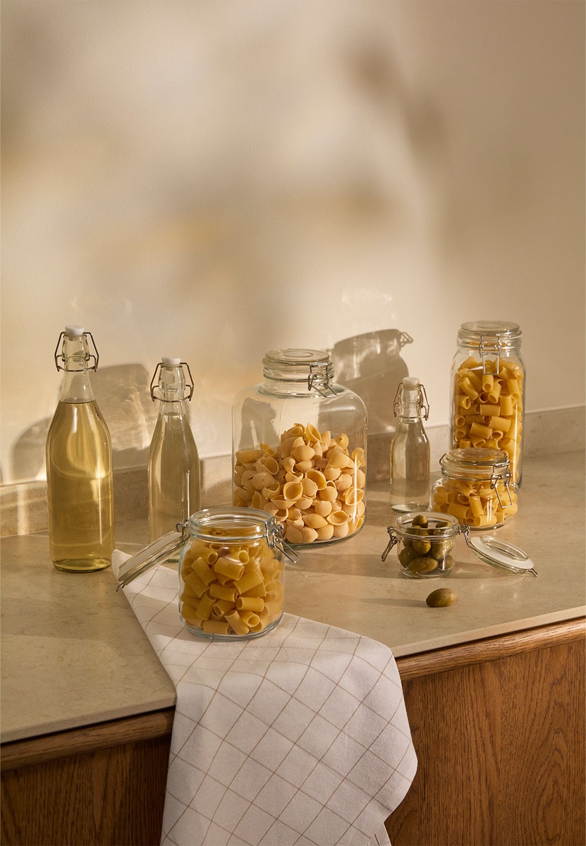 Tiiviisti sulkeutuva lasipurkki napsautettavalla kannella – täydellinen kuivatuotteiden säilytykseen ruokakomerossa tai hillojen ja säilykkeiden säilyttämiseen jääkaapissa. Kansi on täysin tiivis nesteille ja aromeille silikonirenkaan ansiosta, joka kulkee kannen ympäri.