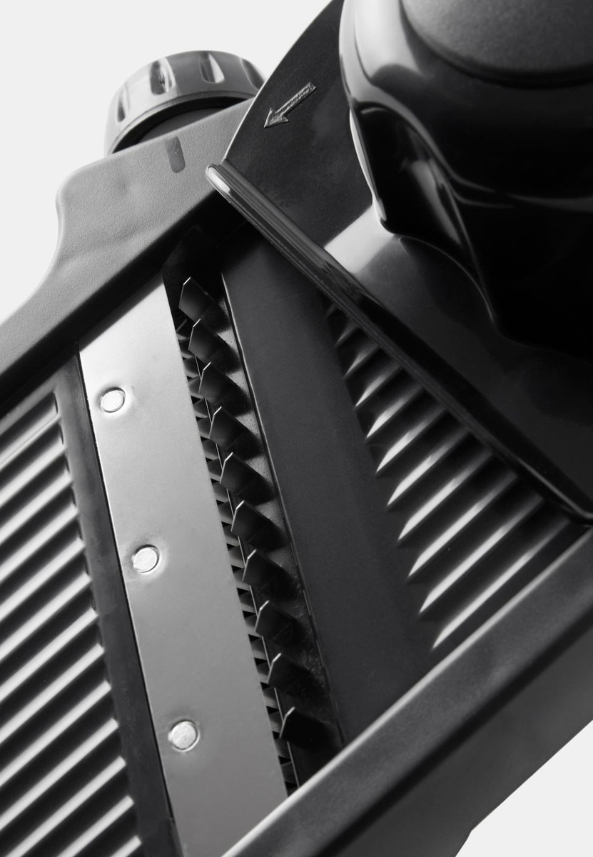 Tämä viipalointilaite leikkaa ja suikaloi vihannekset ja hedelmät tarkasti ja turvallisesti. Laite on varustettu korkealaatuisista ruostumattomasta teräksestä valmistetuilla terillä sekä portaattomalla säätöpyörällä, jolla voit helposti säätää viipaleiden paksuutta. Mukana tulee myös sormisuoja, joka lisää käyttöturvallisuutta. Erinomainen apuväline keittiöön, kun haluat nopeuttaa valmistelua ja varmistaa tasaiset lopputulokset.
