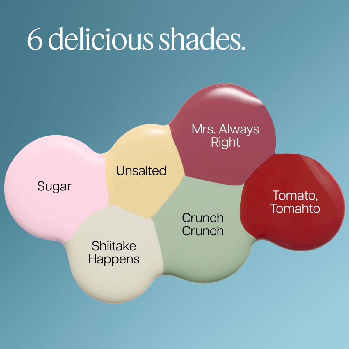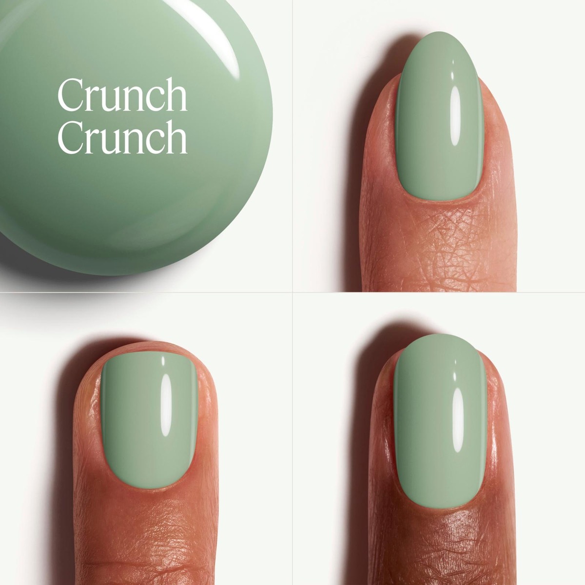 essie Gourmet Grocery -valikoima sisältää mehukkaita kynsilakkoja herkullisilla gourmet-sävyillä kypsästä tomaatinpunaisesta voinkeltaiseen. 'Crunch crunch' on hempeä vaaleanvihreä kynsilakka hienovaraisilla sinisillä vivahteilla.
