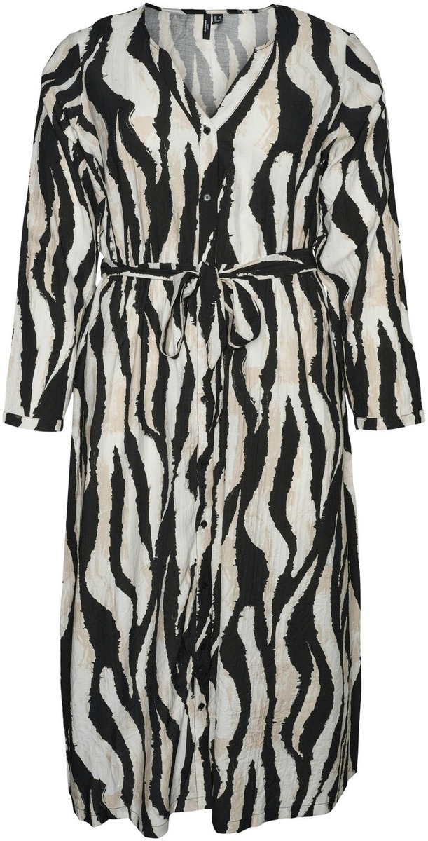 Tyylikäs pitkähihainen mekko V-pääntiellä ja solmittavalla vyöllä.