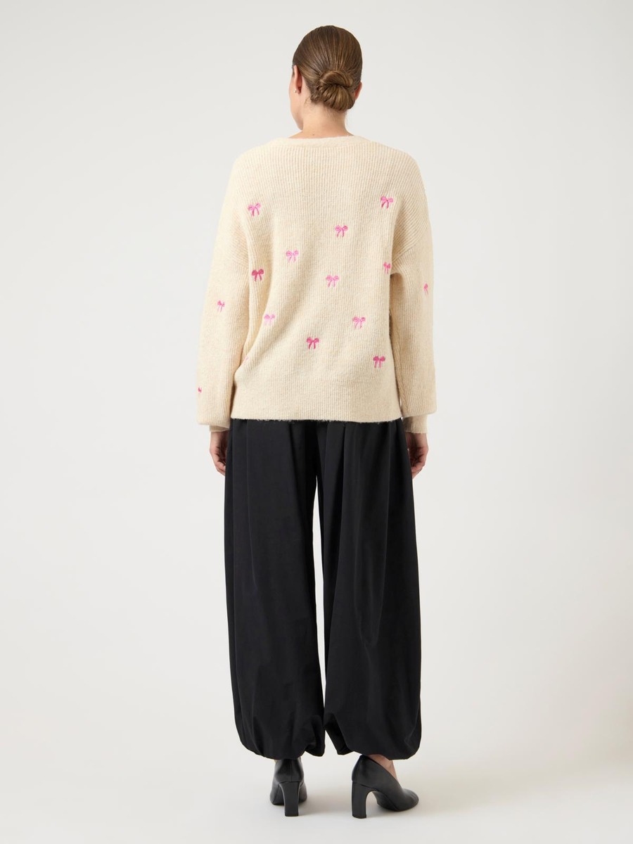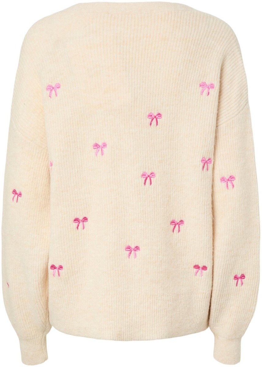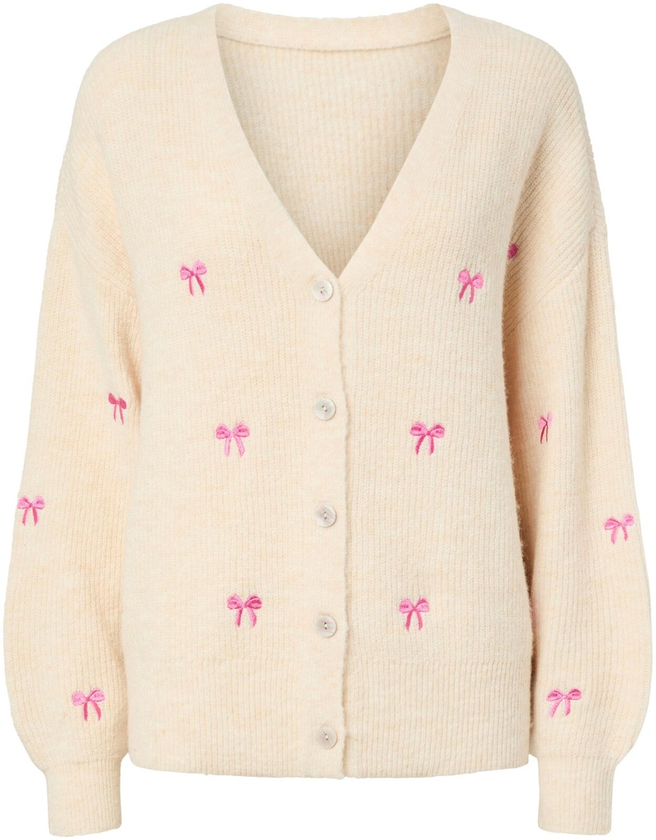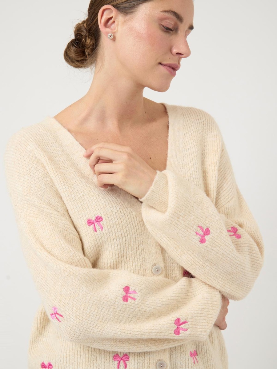 Kaunis pitkähihainen neuletakki rusettibrodeerauksilla.