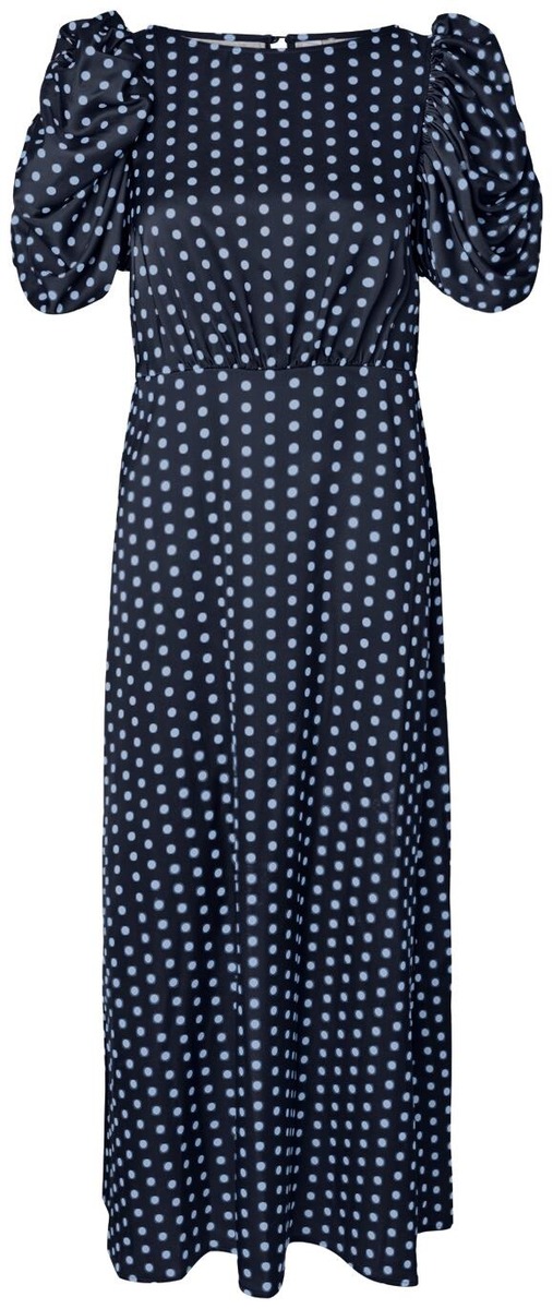 Tyylikäs satiinimekko 2/4 hihoilla ja korostetuilla olkapäillä.