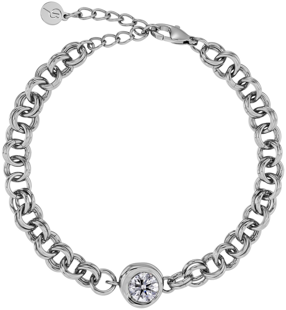 Paksuketjuisessa rannekorussa on yksi zirkoniakoriste. Rannekorun pituus on säädettävissä 15,5-18,5 cm mittaiseksi.