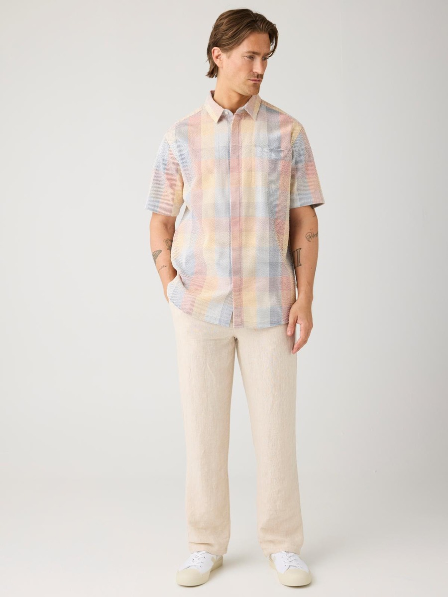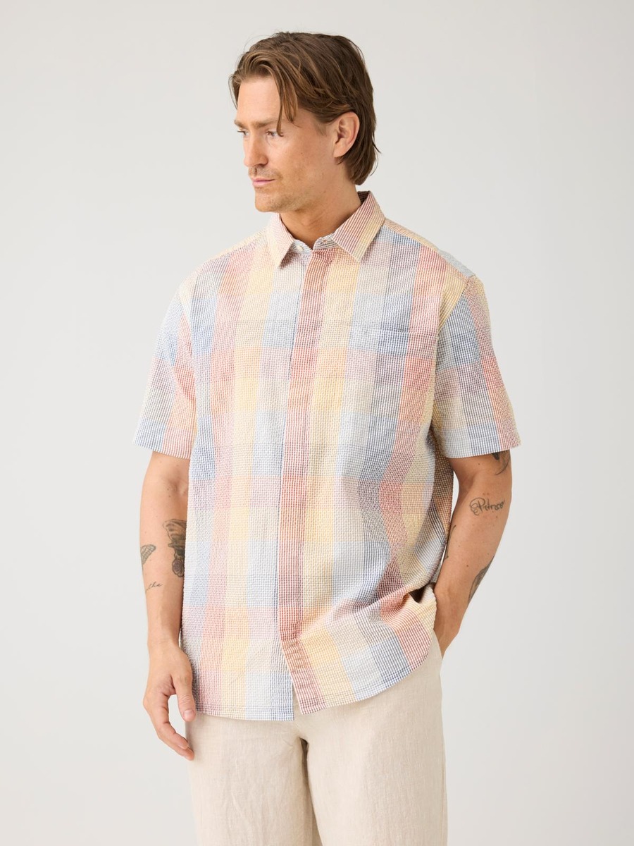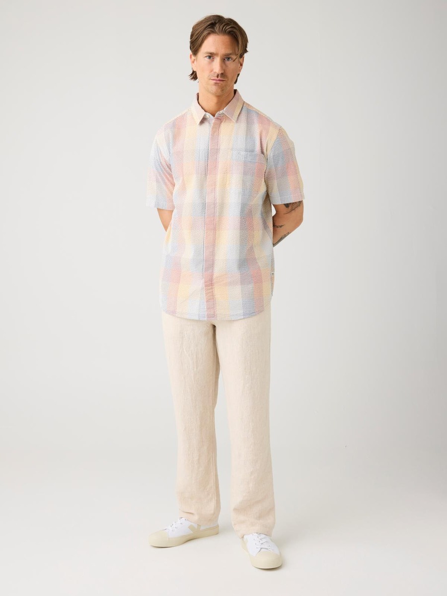 Knowledge cotton apparel Loose fit ss seersucker checkered lyhythihainen kauluspaita