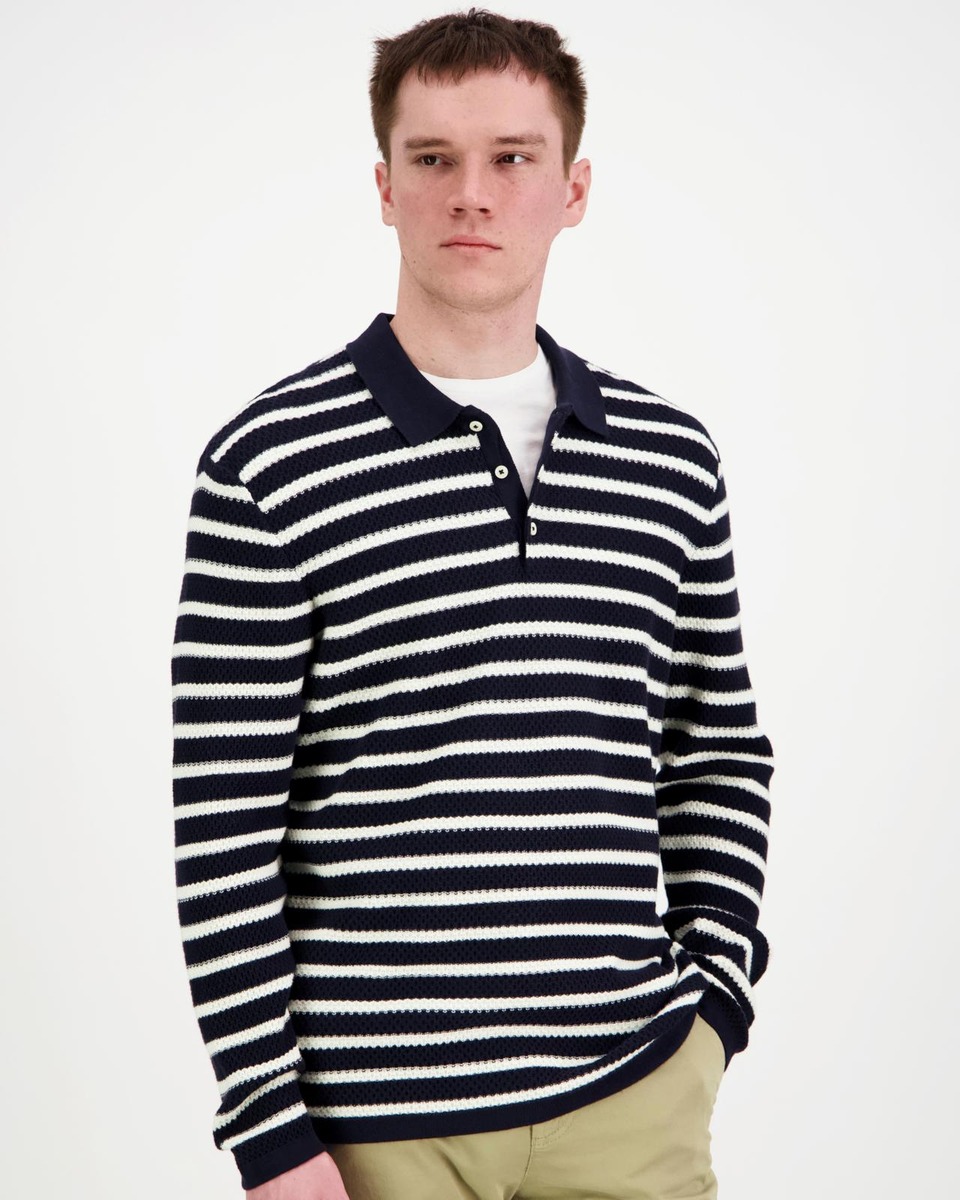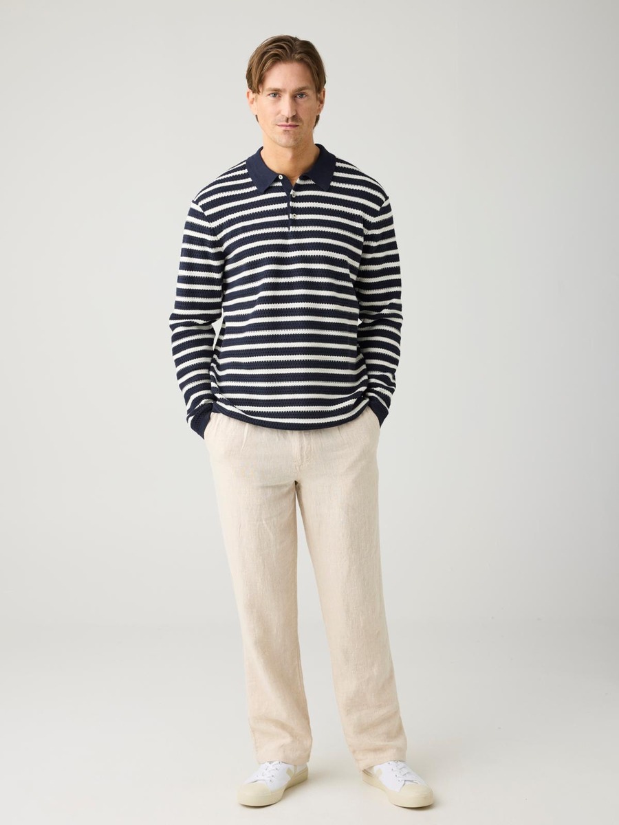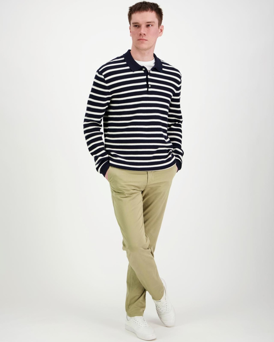 Knowledge cotton apparel Organic Cotton Striped Knitted Polo neule