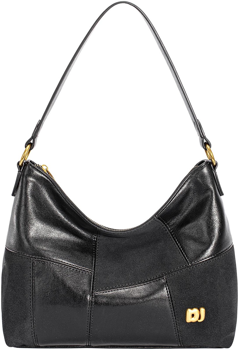 Keinonahkaisessa laukkussa on palakuvioiti keinonahalla ja keinomokalla. Lyhyt olkahihna ja irrotettava säädettävä pitkä olkahihna. Sisällä avotasku ja vetoketjutasku, takana vetoketjutasku. Suljetaan vetoketjulla.