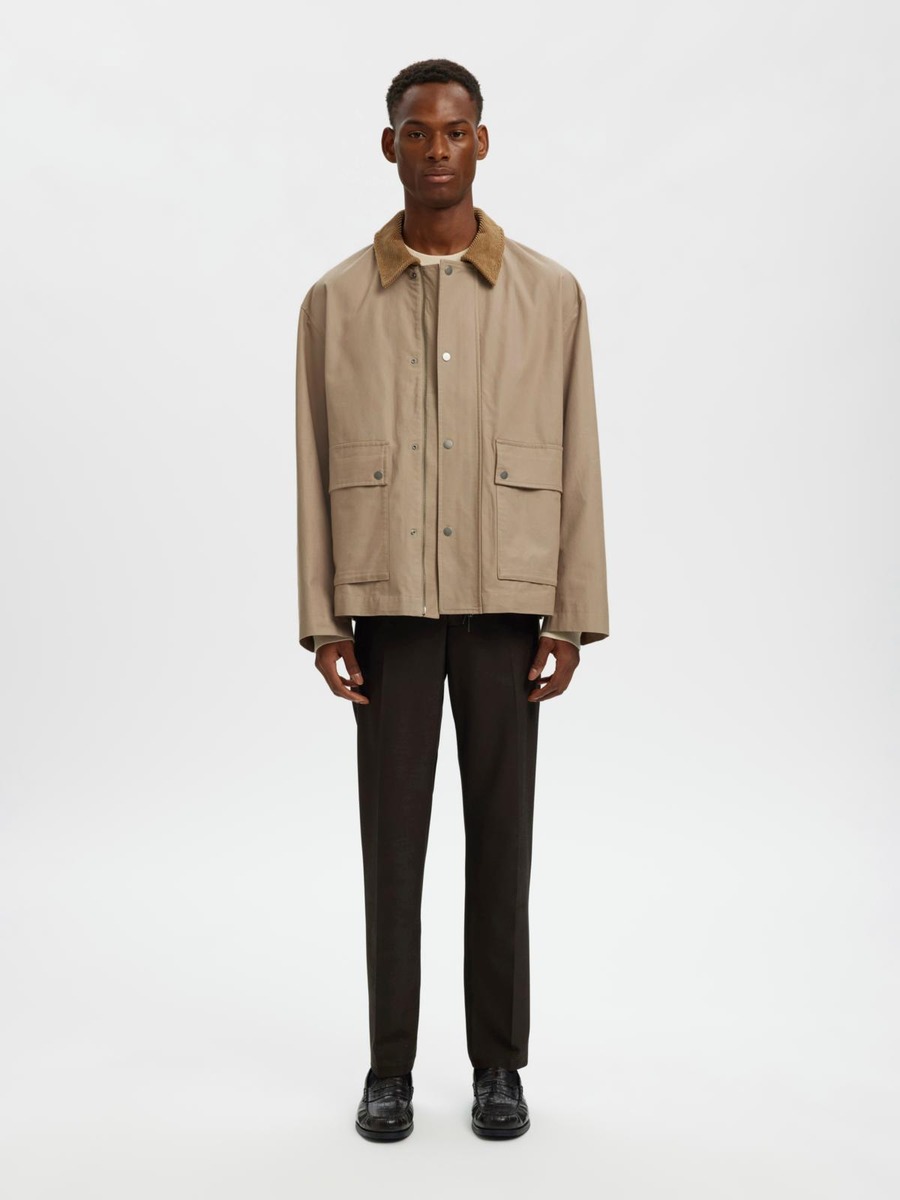 Rento ja mukava takki vapaa-ajan pukeutumiseen. Takissa on levitetty kaulus, pitkät hihat, painonapilliset hihansuut sekä kaksisuuntainen vetoketju ja painonappikiinnitys. Edessä painonapilliset taskut, sivutaskut ja sisätaskut. Lyhyt malli, miellyttävä puuvillavuori lisää käyttömukavuutta.