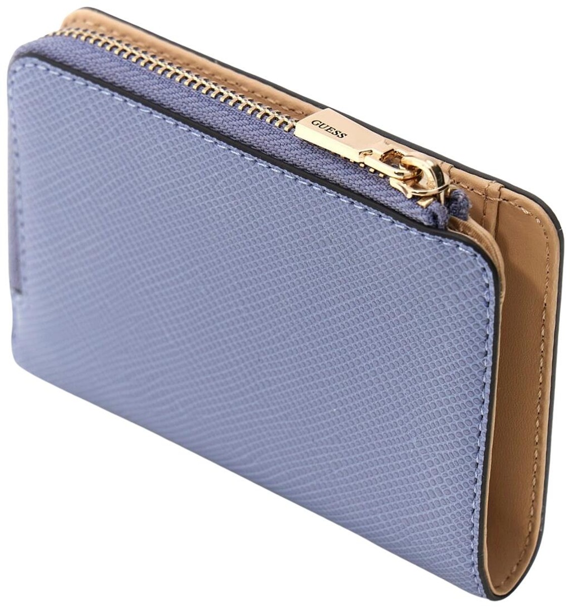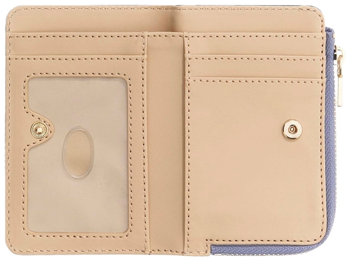 Pieni lompakko jonka kahden sivun läpi kulkee vetoketju ja sisällä on tasku. Lompakon läppä aukeaa painonapilla ja sisältä löytyy korttitaskuja ja setelitasku.