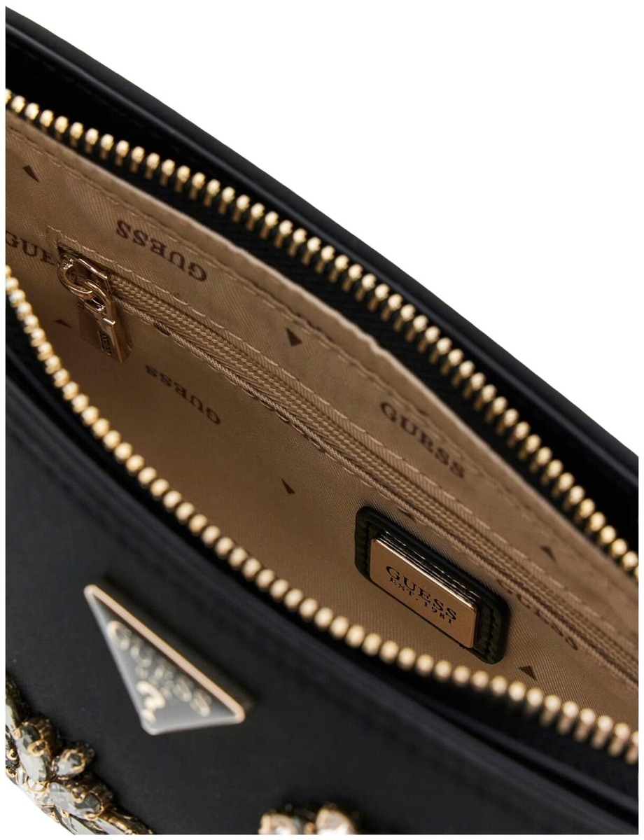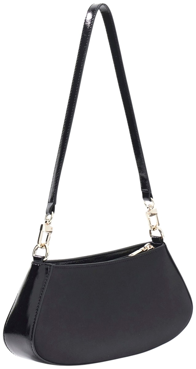Nylonpintainen pieni näyttävä pikkulaukku. Kantohihna irroitettavissa. Laukku aukeaa vetoketjulla ja sisältä löytyy korttitaskuja ja pieni vetoketjutasku.