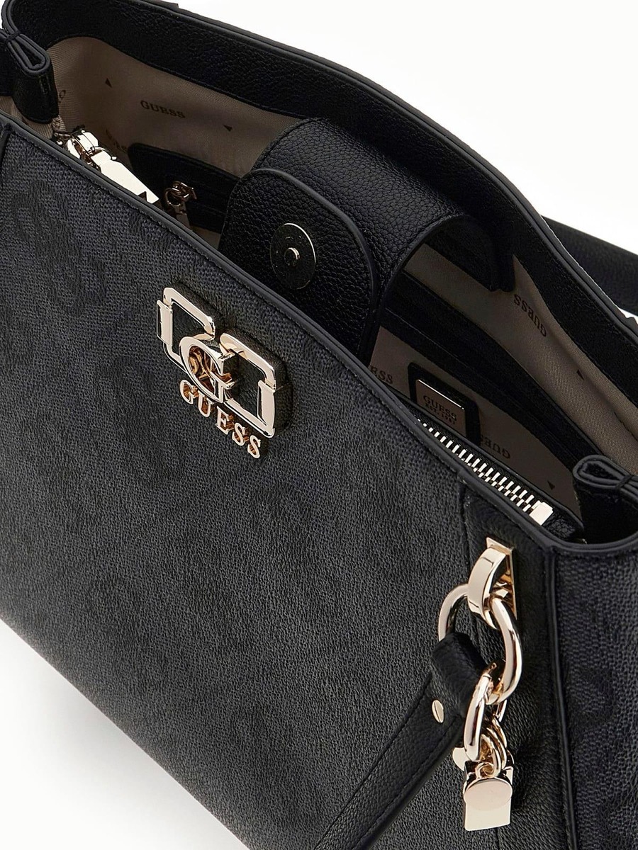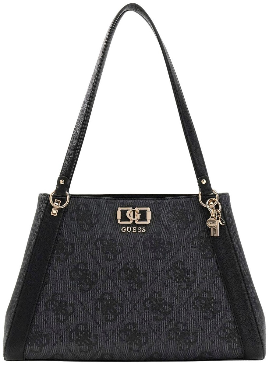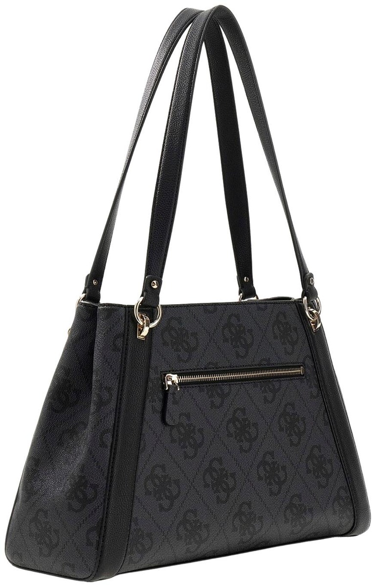 Logokuvioitu olkalaukku kahdella kiinteällä kantohihnalla Laukku aukeaa päältä painonapilla. Sisältä löytyy kaksi vetoketjutaskua ja kaksi avolokeroa sekä kaksi pientä avotaskua. Lisäksi laukun takapuolella pieni vetoketjutasku. Mukana tulee irroitettava laukkukoru.