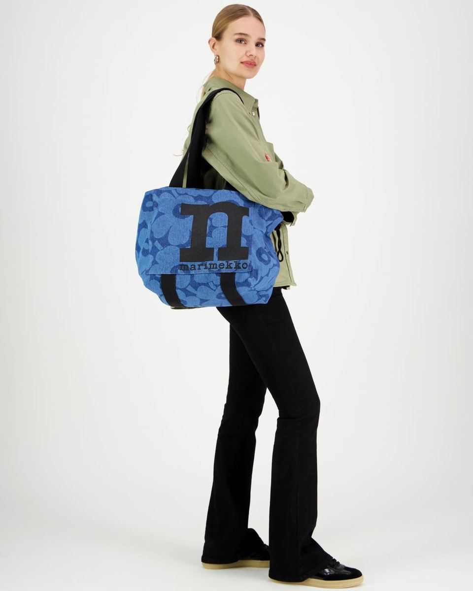 Mono City Tote -laukussa on Unikko-kuosi. Laukussa on kahdet eri pituiset kantokahvat ja avoin ulkotasku, johon on painettu Marimekon suuri M-kirjain. Laukun sivuja kiertävät kiristysnauhat, joilla voi säätää suuaukon suuruutta ja muuttaa laukun muotoa.Tuote on valmistettu puuvillakankaasta, joka sisältää 80 % luomupuuvillaa ja 20 % kierrätettyä puuvillaa.Luovuutta ja rohkeutta symboloiva Unikko syntyi aikana, jolloin Marimekon kuviomaailmaan ei juuri kuulunut kukkia. Maija Isolaa kukka-aihe kuitenkin kiinnosti, ja hän päätti suunnitella kokonaisen sarjan uudenlaisia vahvoja kukkakuoseja.