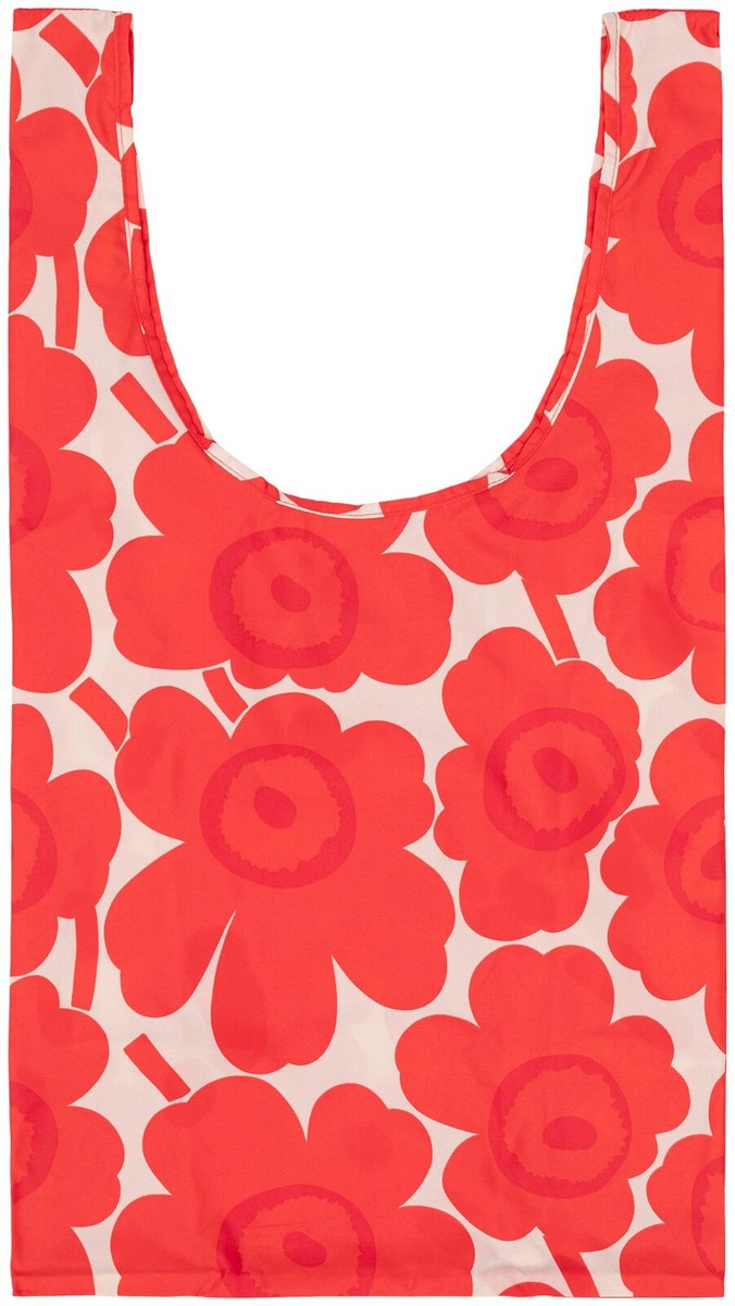 Smartbag-kassi on valmistettu Unikko-kuosisesta 100-prosenttisesta kierrätetystä polyesterista. Kun kassi ei ole käytössä, sen voi taitella pienen sisätaskunsa sisälle. Luovuutta ja rohkeutta symboloiva Unikko syntyi aikana, jolloin Marimekon kuviomaailmaan ei juuri kuulunut kukkia. Maija Isolaa kukka-aihe kuitenkin kiinnosti, ja hän päätti suunnitella kokonaisen sarjan uudenlaisia vahvoja kukkakuoseja.