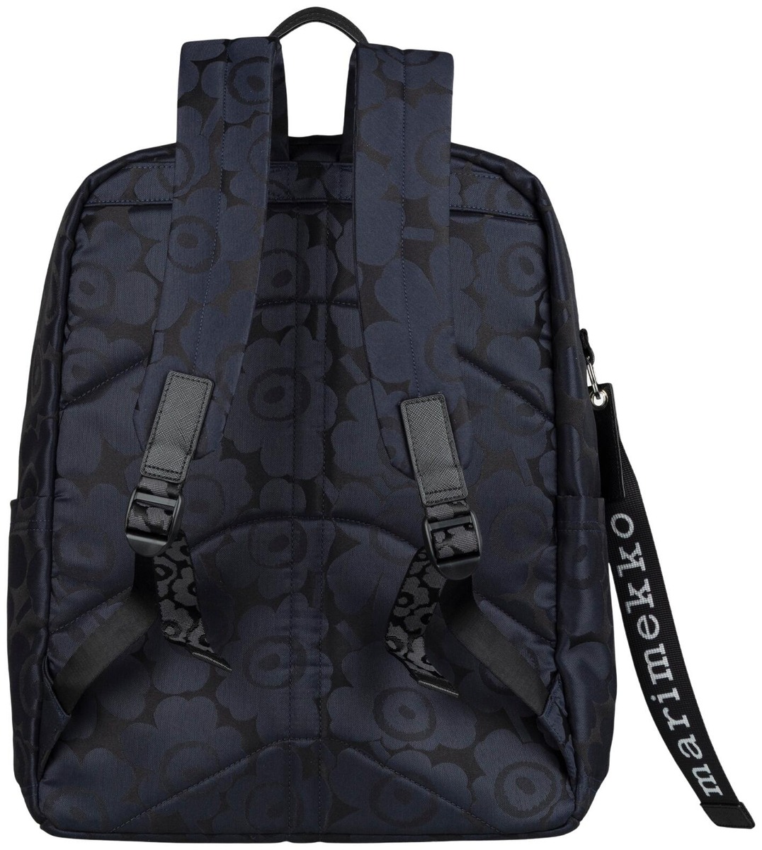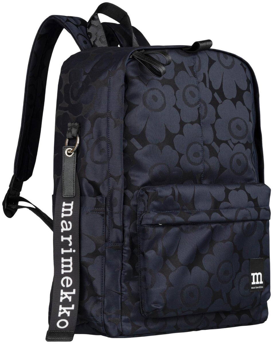 Zip Top Backpack -reppu on valmistettu polyesterista ja siinä on jacquard-kudottu Unikko -kuosi. Tilava reppu sulkeutuu vetoketjulla, siinä on yksi iso vetoketjutasku etupuolella sekä sivuissa avoimet taskut. Sisäpuolella on iso pehmustettu tasku kannettavaa tietokonetta varten. Säädettävissä olkahihnoissa on pehmusteet. Toisella sivulla roikkuu Marimekko-avaimenperä ja edessä on Marimekko-tuotemerkkilappu. Tuotteen päämateriaali on 100-prosenttista kierrätettyä polyesteria. Sisävuori sekä kantokahvat on valmistettu 100-prosenttisesta kierrätetystä polyamidista. Laukussa on kierrätetystä nahasta valmistettuja yksityiskohtia. Luovuutta ja rohkeutta symboloiva Unikko syntyi aikana, jolloin Marimekon kuviomaailmaan ei juuri kuulunut kukkia. Maija Isolaa kukka-aihe kuitenkin kiinnosti, ja hän päätti suunnitella kokonaisen sarjan uudenlaisia vahvoja kukkakuoseja.