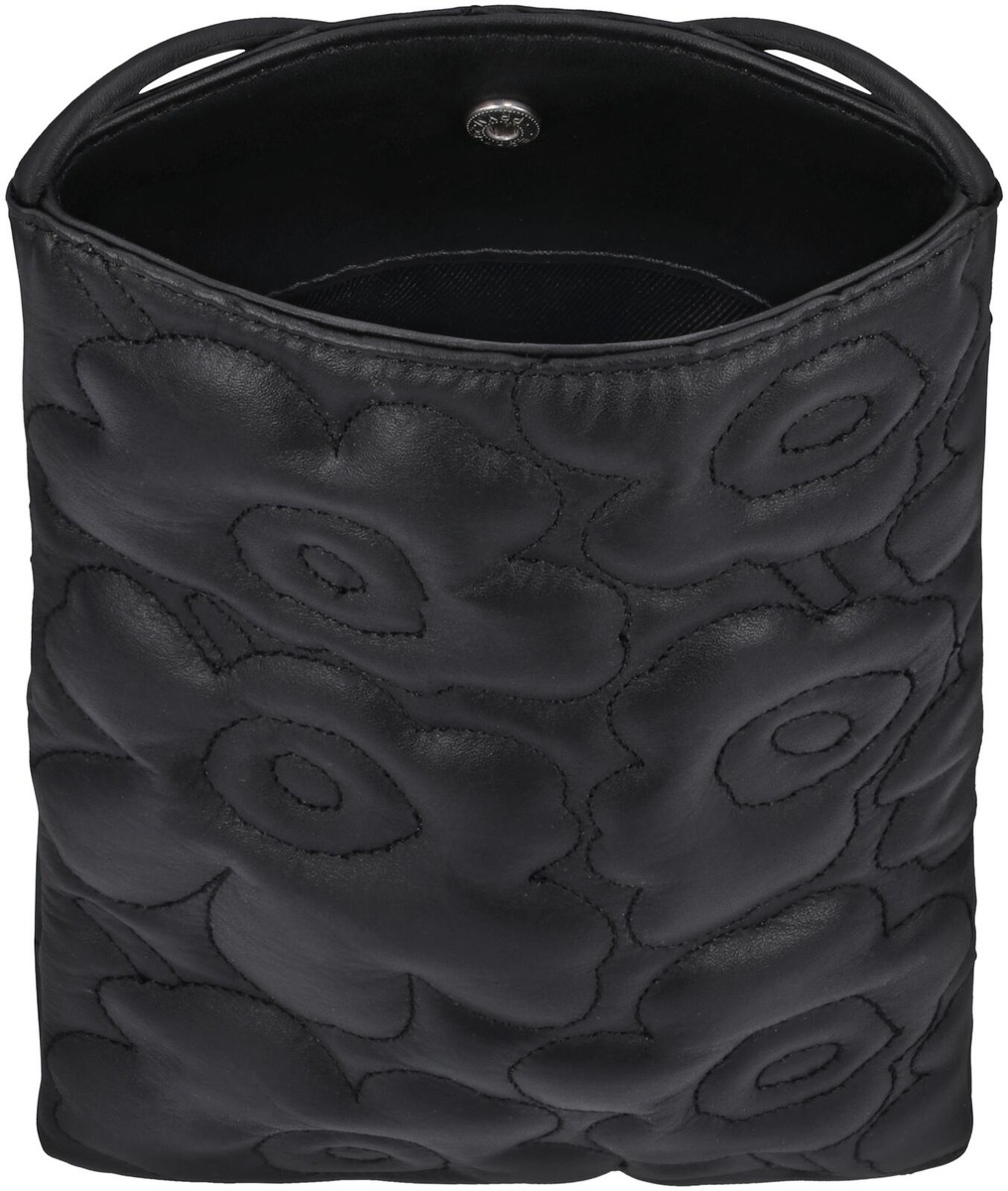 Phone Pocket -laukku on valmistettu pehmustetusta nahasta johon on tikattu Unikko-kuosi. Laukussa on painonappikiinnitys sekä kapea nahkainen olkahihna, jonka pituutta voi säätää solmulla. Tuotteen päämateriaali on nahkaa. Sisävuori on valmistettu 100-prosenttisesta kierrätetystä polyesterista. Marimekko on Leather Working Groupin (LWG) jäsen. LWG on sitoutunut kehittämään vastuullisempaa nahan valmistusta. Luovuutta ja rohkeutta symboloiva Unikko syntyi aikana, jolloin Marimekon kuviomaailmaan ei juuri kuulunut kukkia. Maija Isolaa kukka-aihe kuitenkin kiinnosti, ja hän päätti suunnitella kokonaisen sarjan uudenlaisia vahvoja kukkakuoseja.