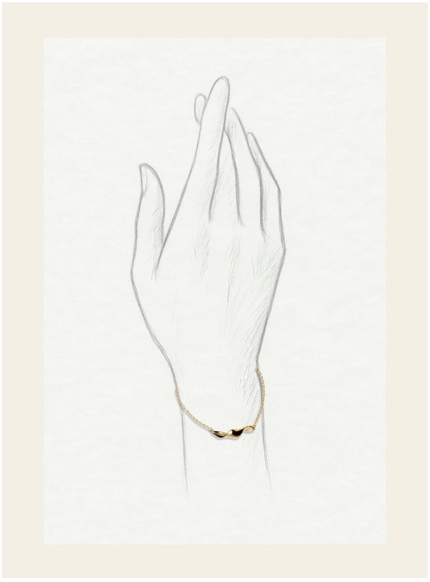 Kiinteästi kiinnitetty ketju korunosaan luo yhtenäisen ja siron rannekorun, jossa säädettävä ketju (16,5/18cm) tekee käytöstä vaivattoman. Minimalistinen muotoilu sopii loistavasti kerrostettavaksi muiden korujen kanssa. Korun koko on 30x7mm. Koru on valmistettu pronssista, joka on pinnoitettu ensin palladiumilla ja sen jälkeen rodiumilla. Monivaiheinen pinnoitus tekee korusta laadukkaan ja kulutusta kestävän. Rodinointi antaa korulle kauniin, kirkkaan hopeansävyn ja suojaa sitä tummumiselta.