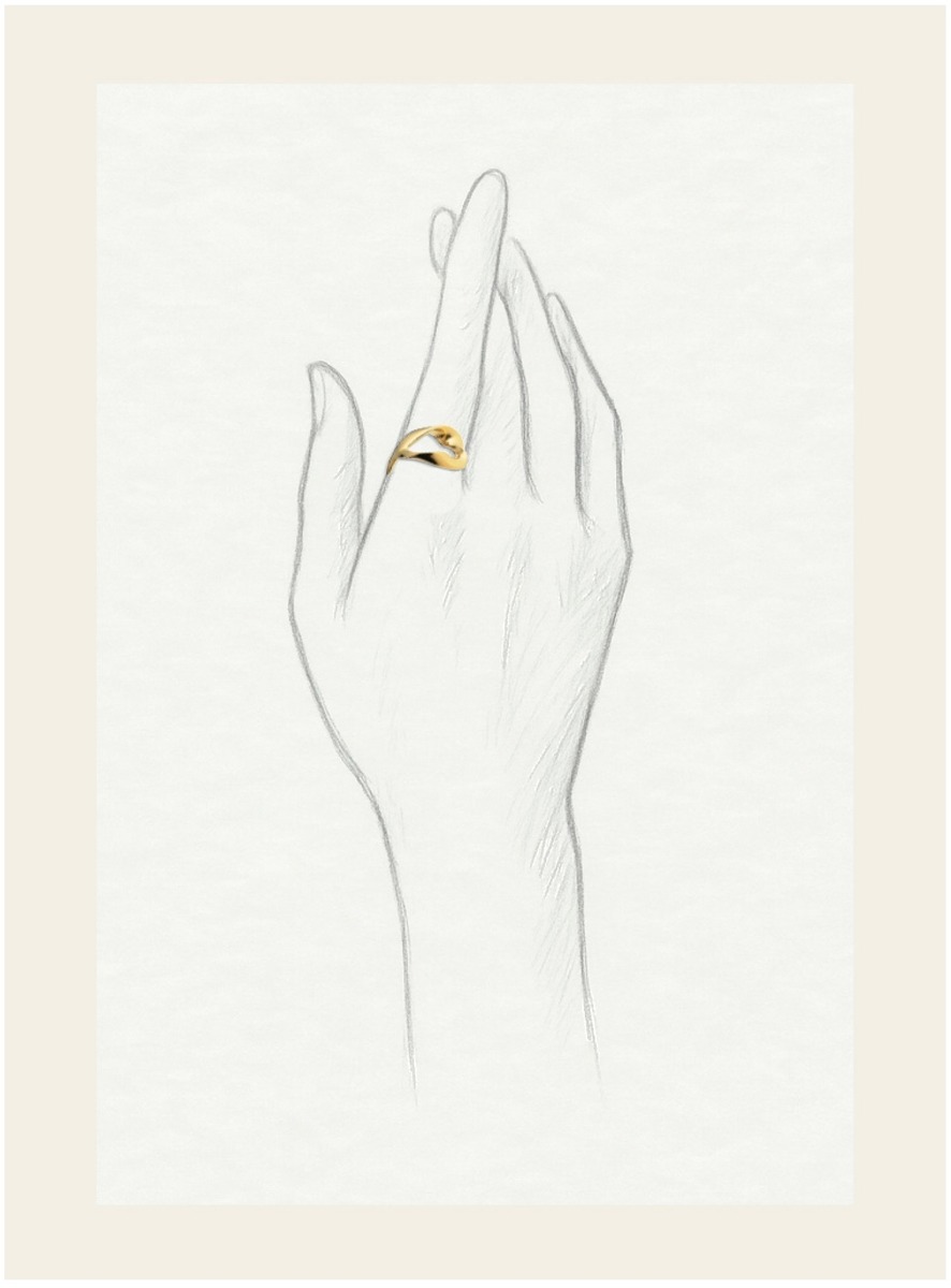 Avoin sormuksen runko mahdollistaa helpon säätämisen, joten koru istuu mukavasti useisiin sormiin. Näyttävä muotoilu tuo keveyttä ja antaa sormukselle modernin siluetin. Koruosan leveys on 16mm. Koru on valmistettu pronssista, joka on pinnoitettu ensin palladiumilla ja sen jälkeen 14 karaatin kullalla. Monivaiheinen pinnoitus tekee korusta laadukkaan ja kulutusta kestävän, sekä antaa sille kauniin kullan sävyn.