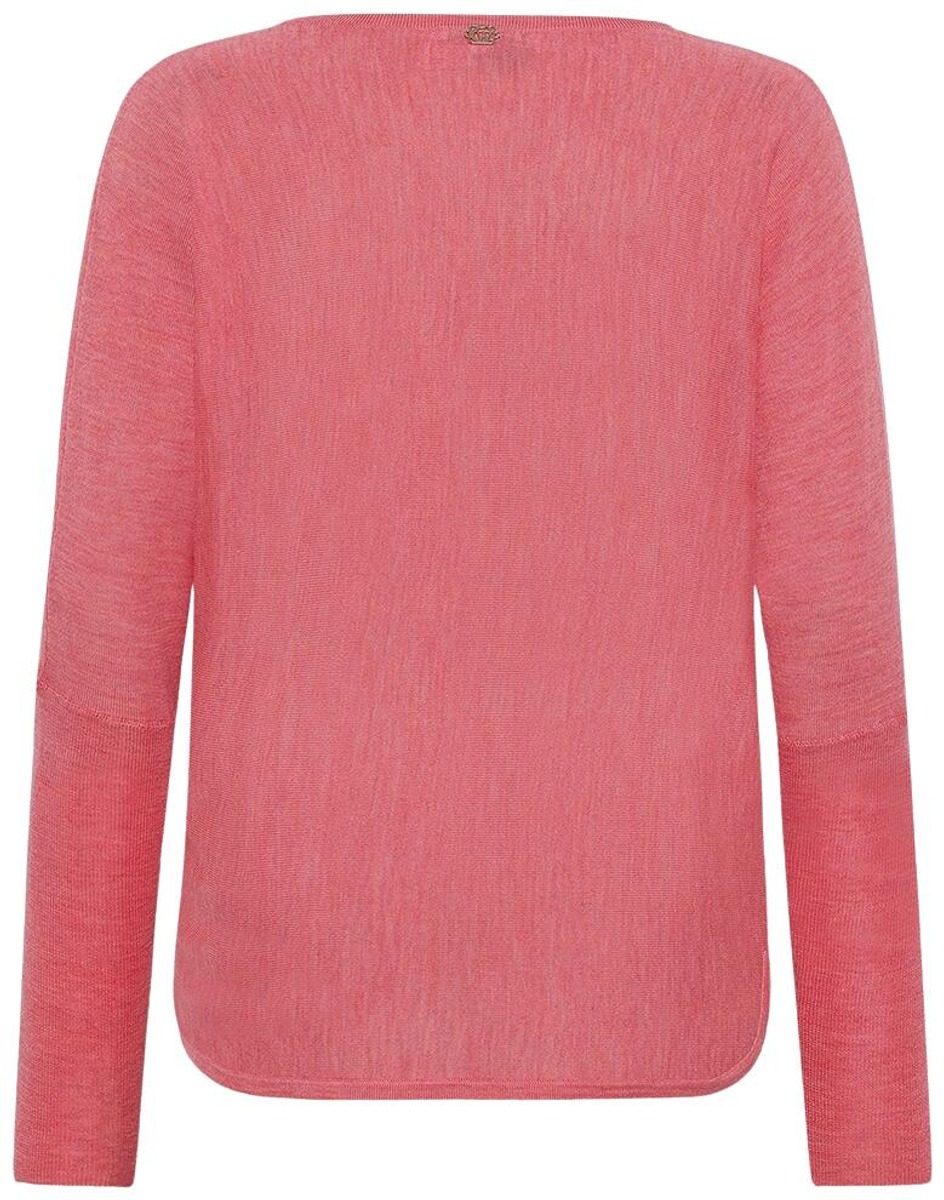 Neuleessa on pyöreä pääntie sekä kauniisti kaarrettu helma. Pitkissä hihoissa on yksityiskohtana korkea ribneulos hihansuissa. Materiaalina pehmeä, Muelesing vapaasti tuotettu Easy Care merinovilla.