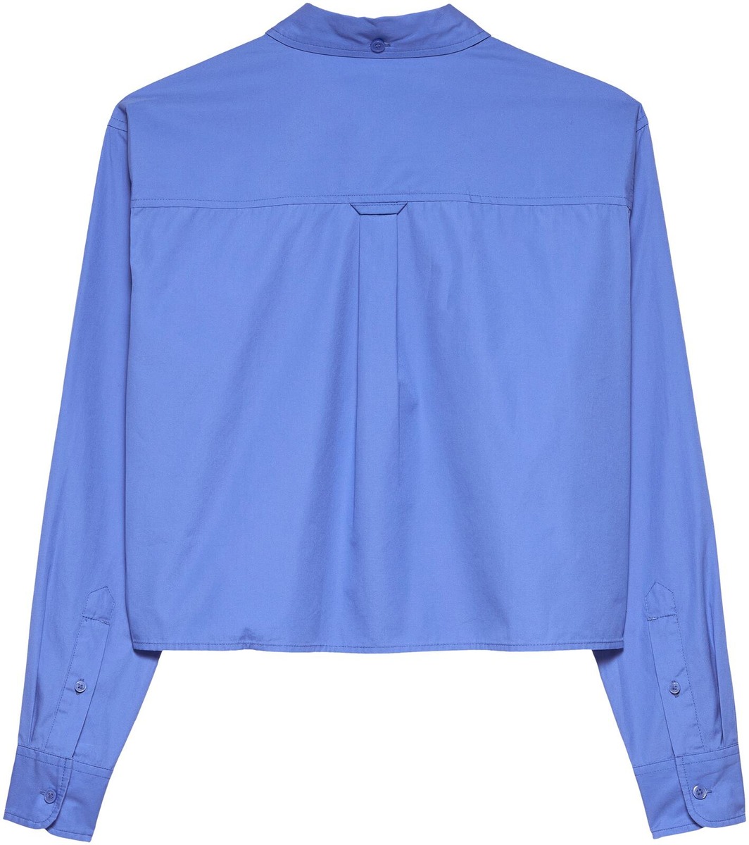Cropattu trendikäs paitapusero, jossa pehmeät tummemmat pastellin sävyt. Edessä pieni brodeerattu logo.