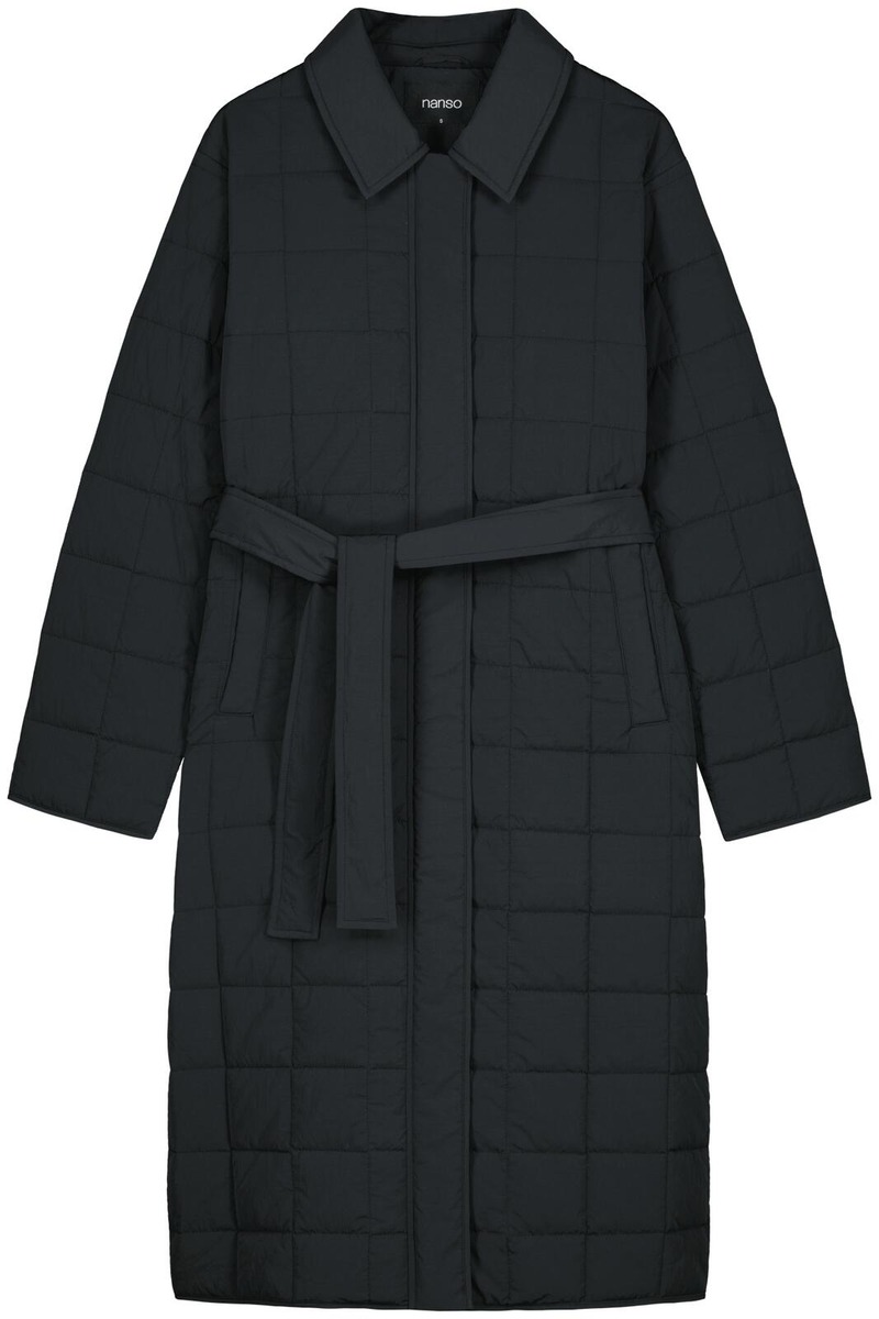 Marje tikkitakki kevyellä vanulla. Takissa on klassiset kaulukset ja edessä nepparikiinnitys. Takin väljyyttä saa kurottua vyöllä ja edessä on listataskut. Takin pituus koossa M on noin 115 cm. Materiaali on laadukasta ja vettähylkivää kierrätyspolyamidia. Takissa on Sorona-vanu.