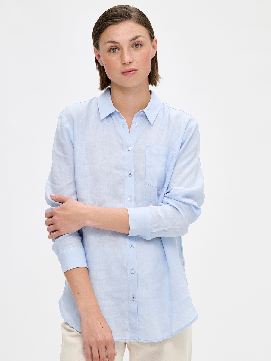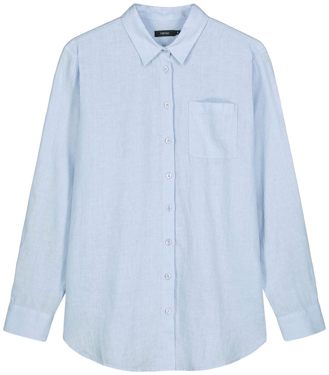 Naisten rento Pellava-paitapusero. Paitapuserossa on napit edessä ja rintatasku. Hihat ovat täyspitkät. Puseron pituus koossa 38 on noin 75 cm. Materiaali on kudottua pellavakangasta, joka on kestävää ja hengittävää. Pellavalle on ominaista luonnollinen pieni rypistyminen. Tuote on esipesty tuotannossa, joten se ei kutistu ensimmäisessä pesussa.