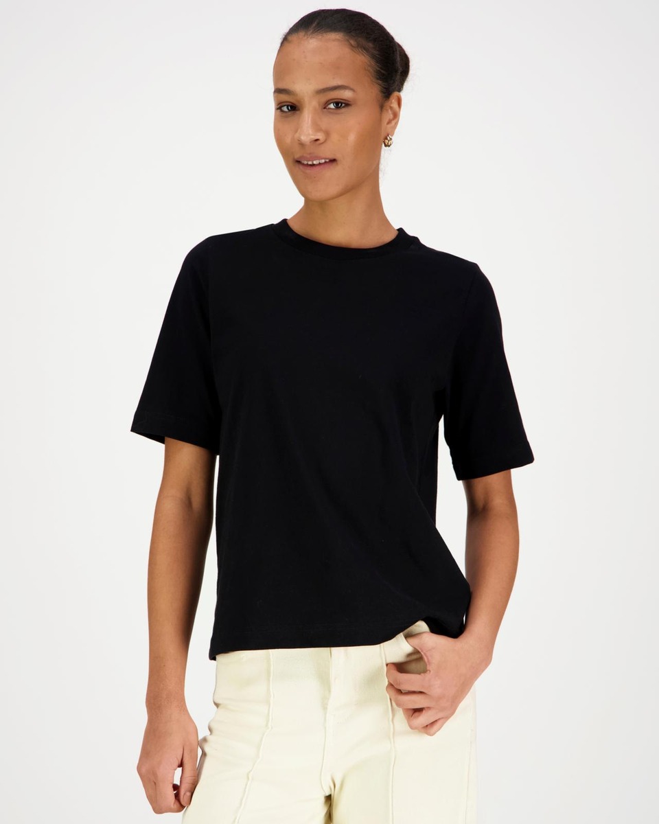 Naisten laadukas Normi-t-paita. Suoralinjaisessa t-paidassa on pyöreä ribbi pääntie ja 2/4 pituiset hihat. T-paidan pituus koossa M on noin 65 cm. Materiaali on 100% laadukasta luomupuuvillaa, joka pysyy hyvänä käytössä.