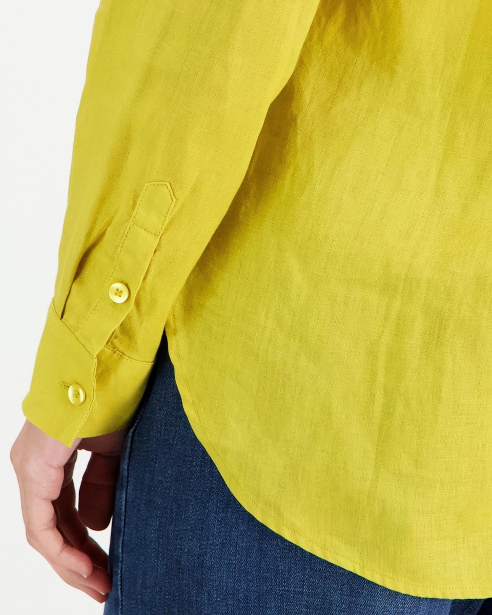 Naisten rento Pellava-paitapusero. Paitapuserossa on napit edessä ja rintatasku. Hihat ovat täyspitkät. Puseron pituus koossa 38 on noin 75 cm. Materiaali on kudottua pellavakangasta, joka on kestävää ja hengittävää. Pellavalle on ominaista luonnollinen pieni rypistyminen. Tuote on esipesty tuotannossa, joten se ei kutistu ensimmäisessä pesussa.