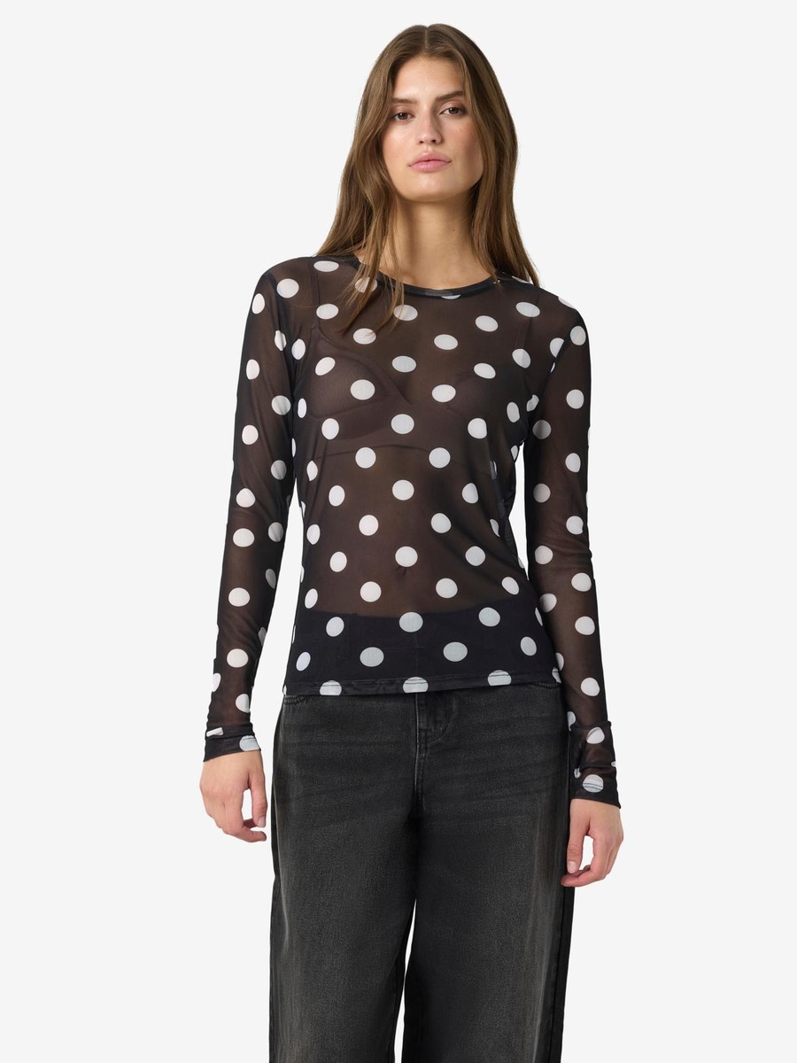 Kevyt ja aina käytännöllinen trikoomeshtoppi, jossa on tämän hetken trendikkäin polka dot-kuosi. Pue takin ja paidan alle tuomaan näyttävyyttä asuusi.