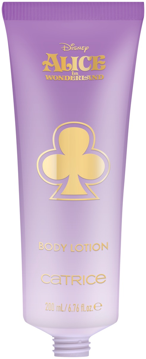 Tee rutiinistasi henkilökohtainen lepopaikka Disnen Alice in Wonderland C01 In A World Of My Own innoittamalla Catrice Body Lotion -vartalovoiteella. Tämä silkkinen voide kietoo ihon lämpimään ja lumoavaan kermaisen kinuskin, vaniljan ja pehmeiden kukkaistuoksujen tuoksuun. Helposti imeytyvä koostumus sisältää karitevoita ja niasiiniamidia, ja se ravitsee ja silottaa ihoa tehden siitä pehmeän, hoidetun ja hennon tuoksuisen – kuin rauhoittava päiväuni pullossa.