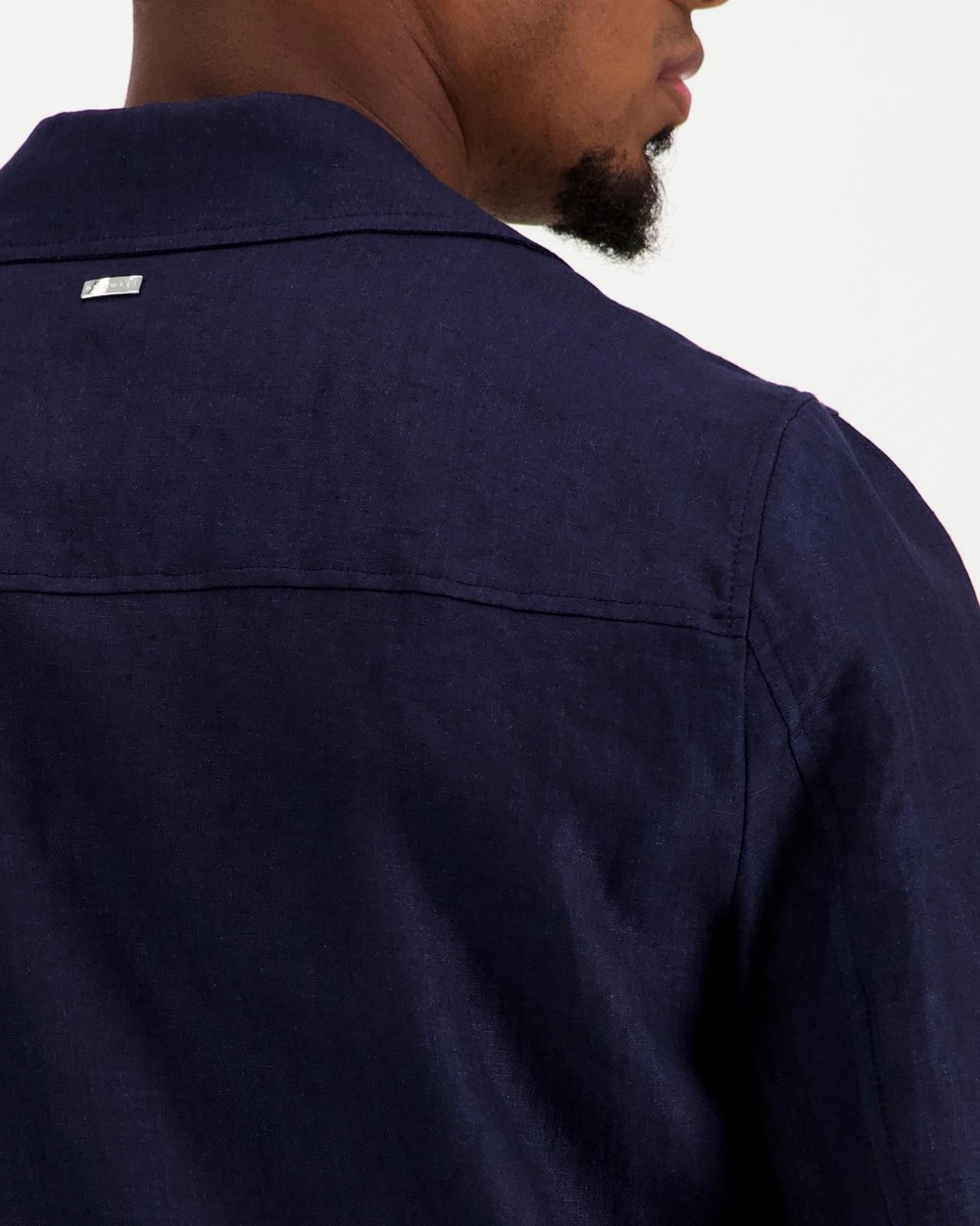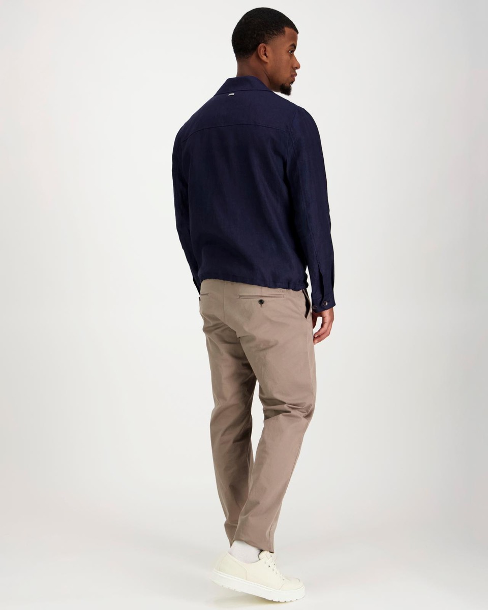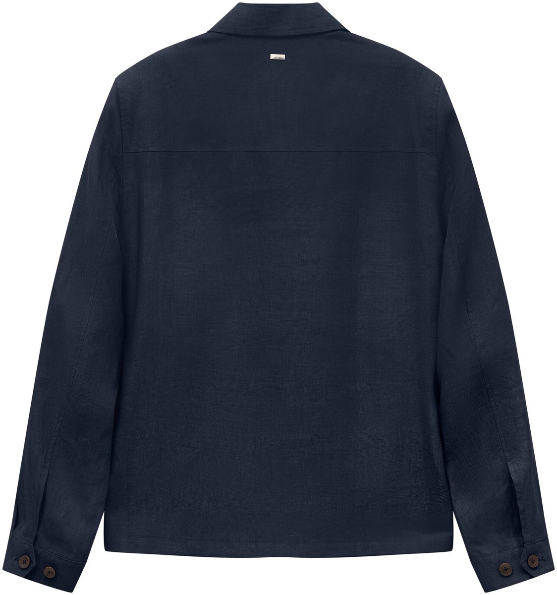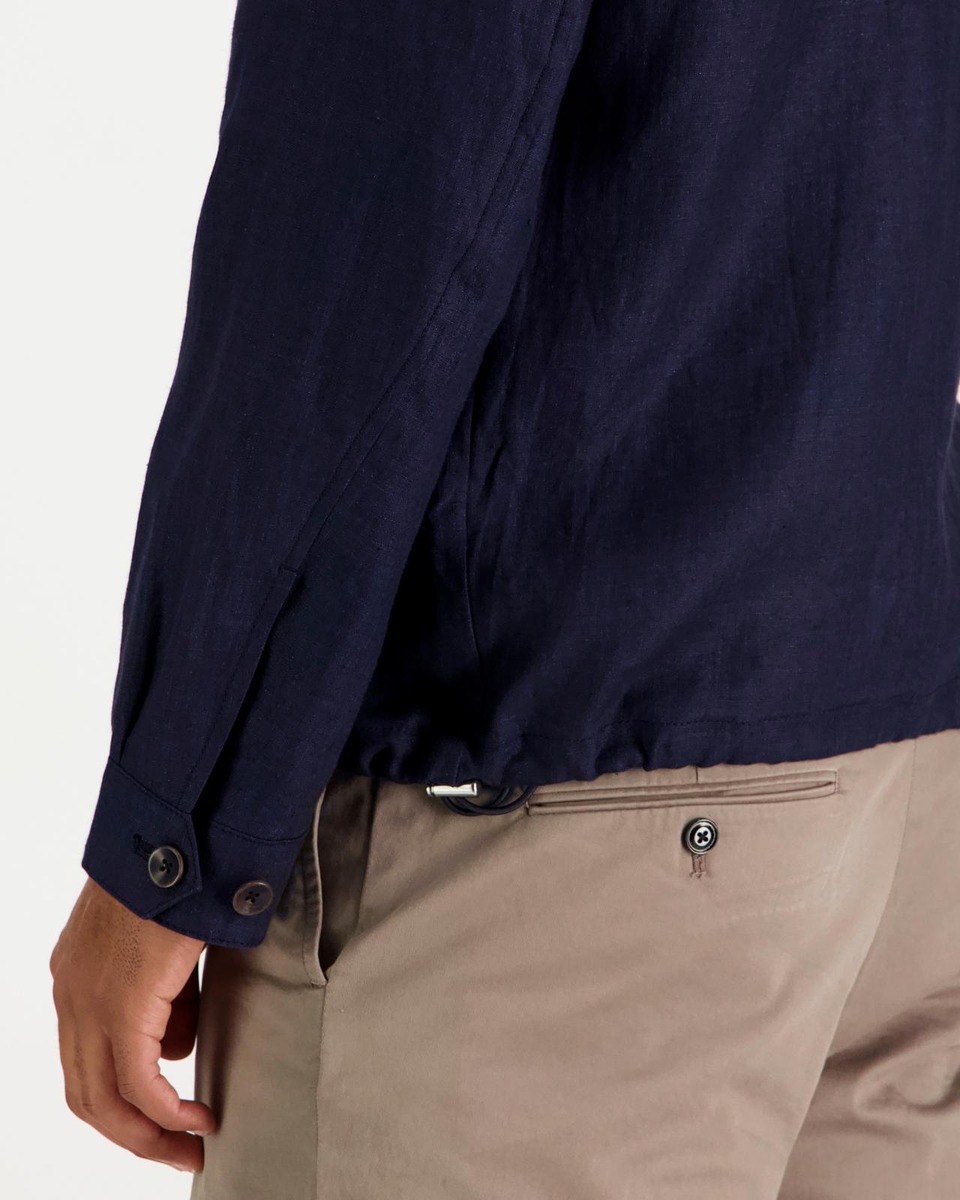 Pellavainen takki, jossa on rintataskut ja suorat sivutaskut. Näkyvä vetoketju etureunassa ja kuminauha helman reunassa. Yksivärinen puolivuori ja povitaskut. Selän pituus on 68 cm.