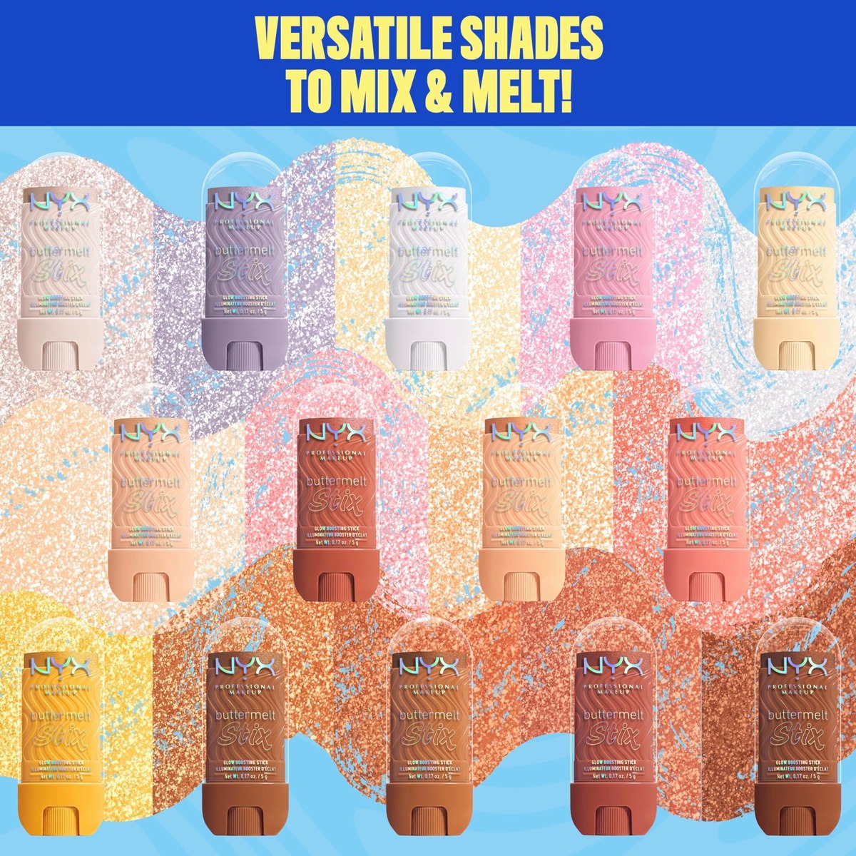 Pehmeää kuin VOI! NYX Professional Makeup Buttermelt Glow Boosting Highlighter Stix -korostuspuikot antavat iholle voinpehmeää korostusta ja hohtoa päästä varpaisiin. Ravitsevaa cupuaçu- ja kookosvoita sisältävä koostumus antaa iholle kosteuttavan meikkipohjan, joka sulautuu ihoosi täydellisesti. Upeaa hehkua ilman varisevaa kimalletta kasvojen kohokohtien valaisemiseen tai antamaan hohdetta koko kasvoille. Voidaan käyttää myös vartalon ihon korostamiseen solisluilla, käsivarsissa ja jaloissa. • Kestää jopa 8 tuntia • Ei kerry juonteisiin tai jätä rasvaista tunnetta • Ei sisällä varisevaa kimalletta • Koostumus sisältää cupuaçu- ja kookosvoita