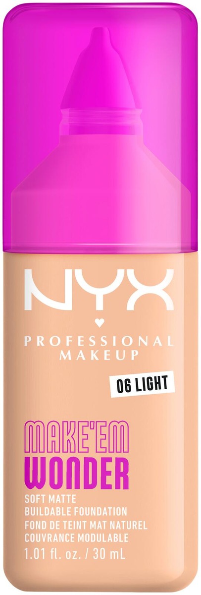 MAKE 'EM WONDER -meikkivoide antaa pehmeän mattapintaisen ja kerrostettavan ihoa muistuttavan lopputuloksen. NYX Professional Makeup Make'em Wonder ihoa hoitavia ainesosia sisältävän meikkivoiteen koostumus antaa täyden peittävyyden, mutta tuntuu silti keveältä iholla ja kestää koko päivän. Kuin oma ihosi, mutta sileämpi, ??tasaisempi ja heleämpi. Koostumus sisältää guaranauutetta, joka tunnetaan heleyttävistä ominaisuuksistaan, sekä hyaluronihappoa, joka kosteuttaa ihoa välittömästi eikä jätä kakkumaista tunnetta. Kerrostettavan koostumuksen avulla voit luoda haluamasi lookin ’no-makeup’ -meikistä ylelliseen glamouriin. Haalistumaton ja tahraamaton sekä veden- ja hienkestävä meikkivoide saa ihon näyttämään heleältä koko päivän. • Koko päivän kestävä keveältä tuntuva lopputulos • Koostumus sisältää guaranuutetta ja hyaluronihappoa • Veden- ja hienkestävä • Haalistumaton ja tahraamaton • Välitöntä kosteutusta ilman kakkumaista tunnetta • Hillitsee ihon kiiltoa koko päivän • Vegaaninen koostumus* *Ei sisällä eläinperäisiä ainesosia