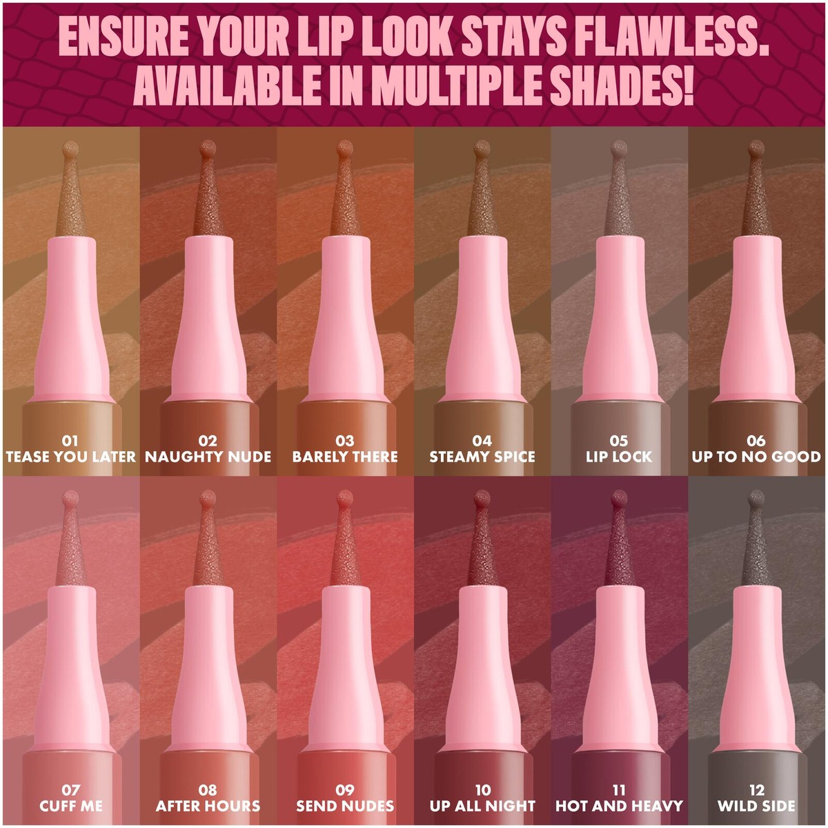 Väritä. Muotoile. Kohota. NYX Professional Makeup Lip Lingerie Liner Stain -huultenrajauskynä muotoiluun ja antamaan väriä huulille. Innovatiivinen nestemäinen huultenrajauskynä antaa koko päivän kestävän vedenkestävän värin, joka ei leviä tai tahraa. Monikäyttöinen pyöristetty huopakärkinen huultenrajauskynä myötäilee vaivattomasti ja tarkasti huulten kaaria. Luo kohottava vaikutelma muotoilemalla huulet tai väritä koko huules. Häivytä tarkat rajaukset, jotta rajausväri ei leviä. Koostumus sulaa huulille kuin silkki ja antaa pitkäkestoista määrittelyä. • Koko päivän kestävä lopputulos ei leviä • Tahraamaton ja vedenkestävä väri • Tarkka huopakärki • Kevyt ja miellyttävä nestemäinen koostumus • Ei leviä tai tahraa • Vegaaninen koostumus* *Ei sisällä eläinperäisiä ainesosia