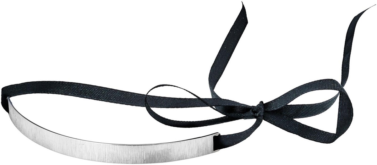 Veden liikkeestä inspiroitunut aaltoileva pinta tekee Maininki-koruista yhtä aikaa harkittuja ja huolettoman keveitä. Tämän hyvin trendikkään chocker korun voi solmio eri tavoin, pelkistetysti kaulan taaksen, tai modernisti sivulle. 100% kierrätettyä hopeaa. Nauha lev. 6mm.