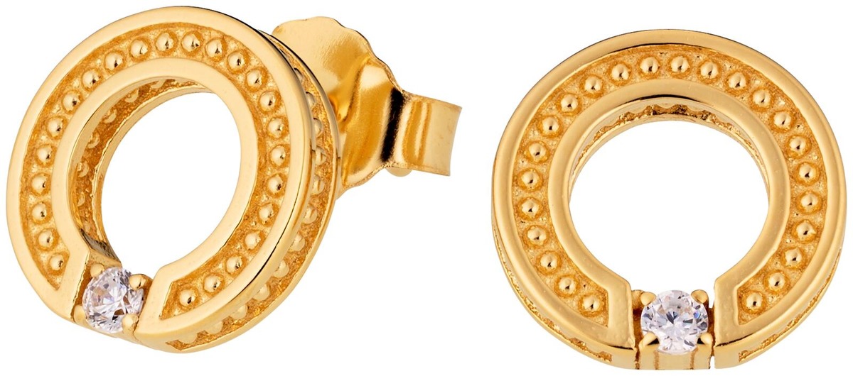 Aina-korujen pelkistetty muoto saa viimeistelyn helmeilevästä reunasta ja kirkkaasta kivestä. Sarjassa yhdistyvät selkeys ja hienovaraisuus mikä ei ole sesonkiin sidottu vaan suunniteltu kestämään aikaa – sellainen koru, joka toimii aina, riippumatta tilanteesta tai tyylistä. 100% kierrätettyä hopeaa, keltakullattu.