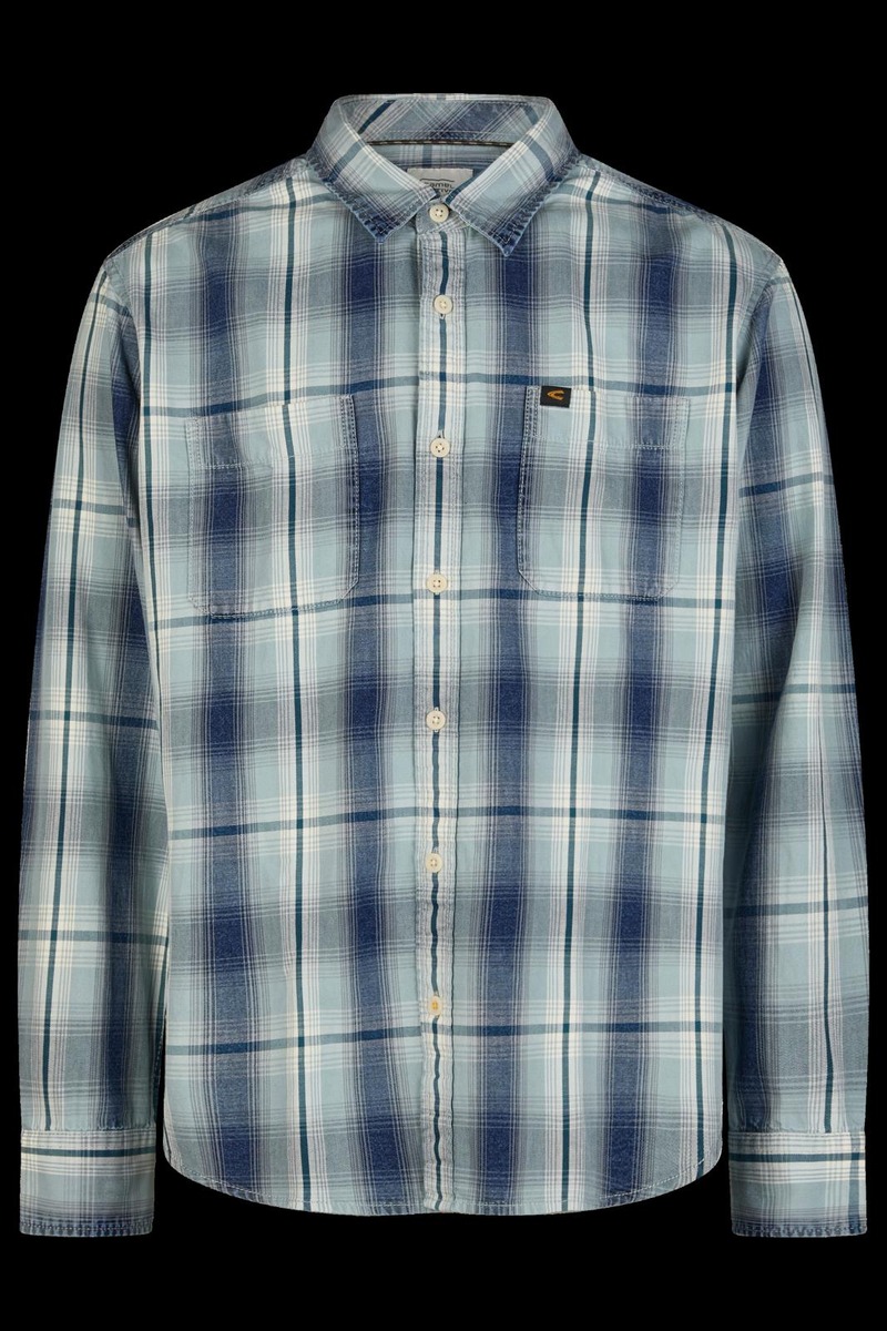 Pitkähihainen puuvillapaita kent-kauluksella ja kahdella rintataskulla.