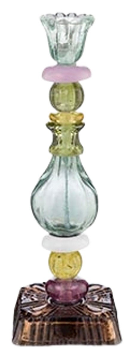Pip Studion, tunnelmaltaan kuulas ja keväinen kynttilänjalka on kaunis yksittäisenä katseenvangitsija tai osana muuta somistusta. Sen pastelliset värit voidaan helposti yhdistää muuhun sisustukseen. Kynttilänjalka on lasia.