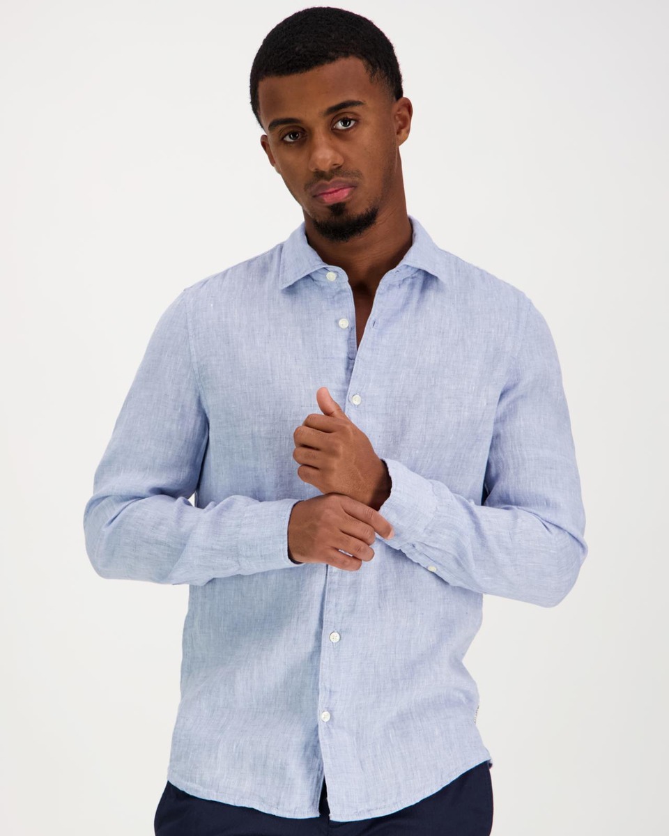 Miesten slim fit mitoituksinen pellavapaita