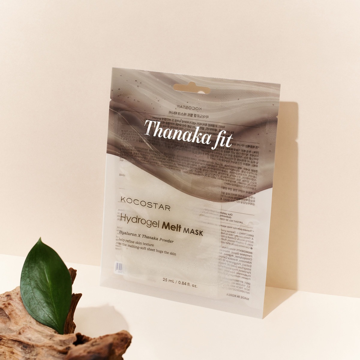 KOCOSTAR Hydrogel Melt Mask Thanaka Fit auttaa parantamaan ihon tekstuuria ja tekemään siitä sileämmän. Hypoallergeeninen koostumus sopii myös herkälle iholle. Sekä naamion kangas että hoitoneste sisältävät thanaka-jauhetta ja -uutetta, jotka puhdistavat ja rauhoittavat ihoa; hyaluronihappoa, joka tarjoaa pitkäkestoista kosteutusta; sekä keramidia, joka vahvistaa ihon suojakerrosta ja sitoo kosteuden ihoon. Lopputuloksena on pehmeä, raikas ja tasapainoinen iho.