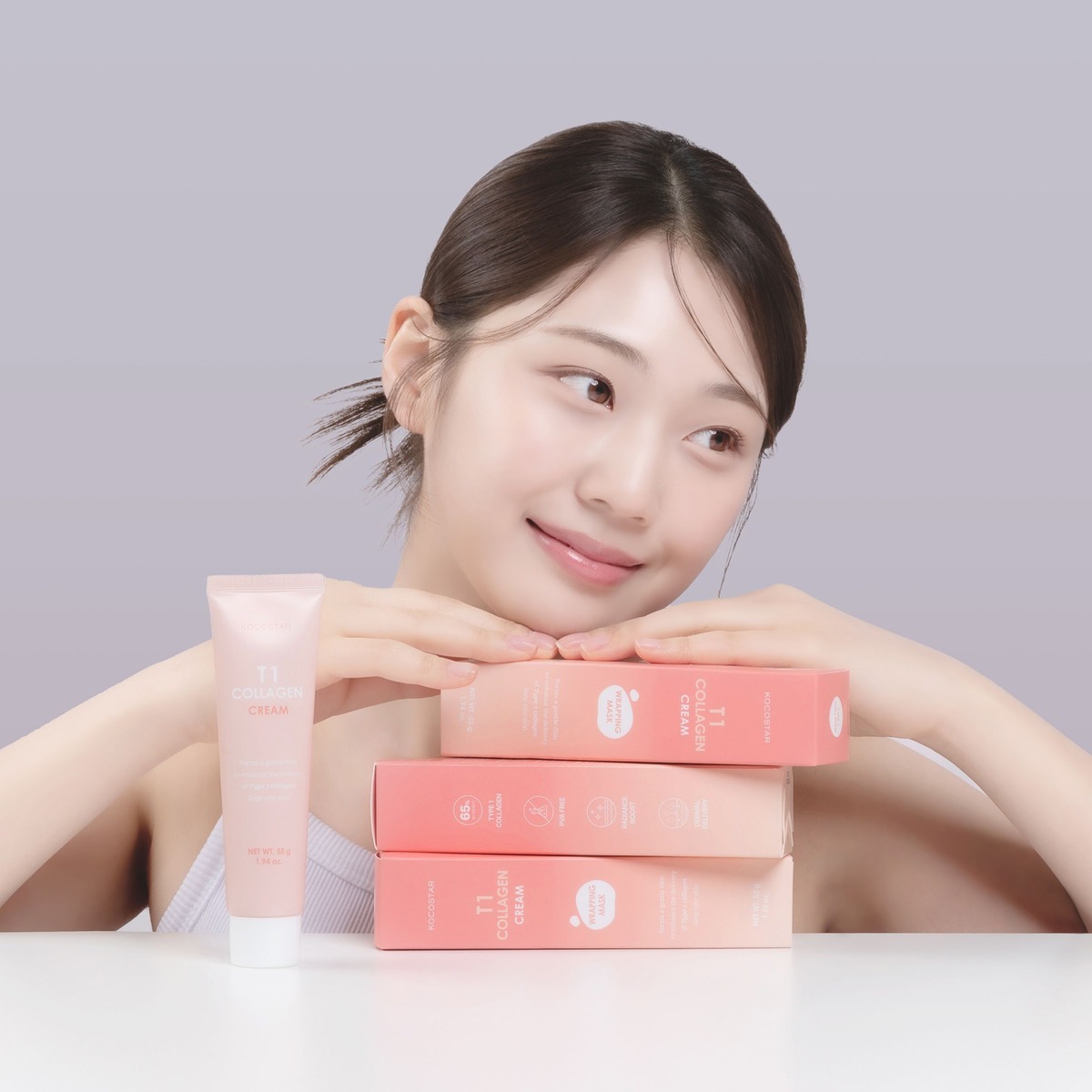 KOCOSTAR T1 Collagen Cream on 65 % hydrolysoitua kollageenia sisältävä innovatiivinen, kalvon muodostava naamio, joka auttaa tasoittamaan ihon pintaa ja vähentämään näkyviä ikääntymisen merkkejä ajan myötä. Se sisältää myös vitamiineja ja antioksidantteja, jotka tasapainottavat, rauhoittavat ja tasoittavat ihoa. Naamio hyödyntää joustavia nanovesikkeleitä, jotka kuljettavat hydrolysoidut, pienet kollageenimolekyylit syvälle ihoon (Transdermal Delivery System). Naamio käyttää myös teknologiaa nimeltä Occlusive Dressing Technique, ja muodostaa kasvoille luonnollisista aineista koostuvan kalvon, joka parantaa kollageenin imeytymistä samalla pitäen ihon kosteutettuna. T1 Collagen Cream eroaa tavanomaisista peel off -naamioista, sillä sen muodostama kalvo irtoaa kasvoilta helposti ärsyttämättä ihoa. Tämä ainutlaatuinen naamio jättää kasvoille ihastuttavan hehkun.