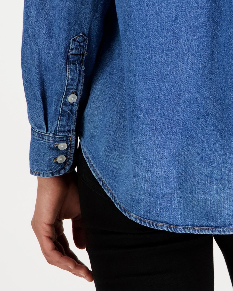Klassinen denim-paita, vaatekaapin luottovaate, joka tuo pukeutumiseesi aikaa kestävän elementin. Materiaali luomupuuvillaa.