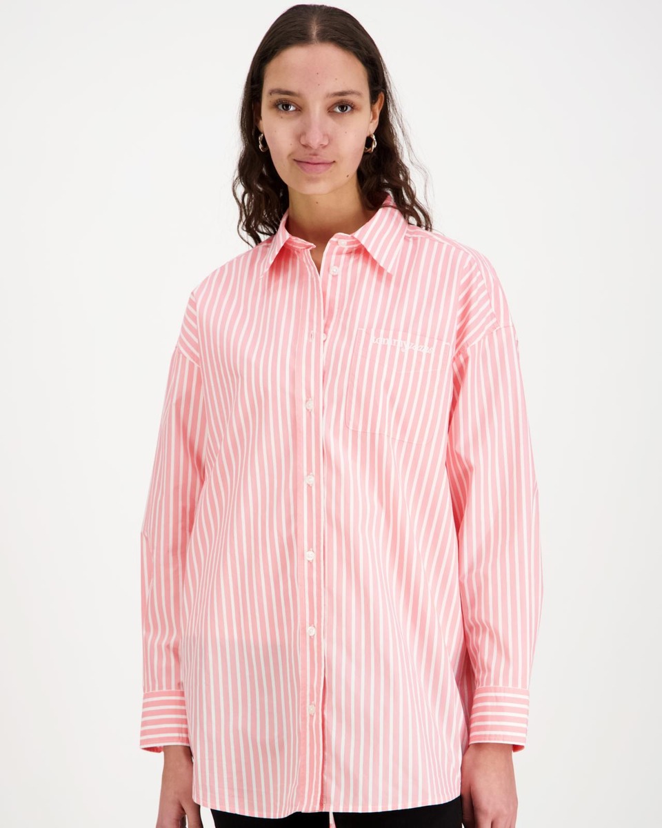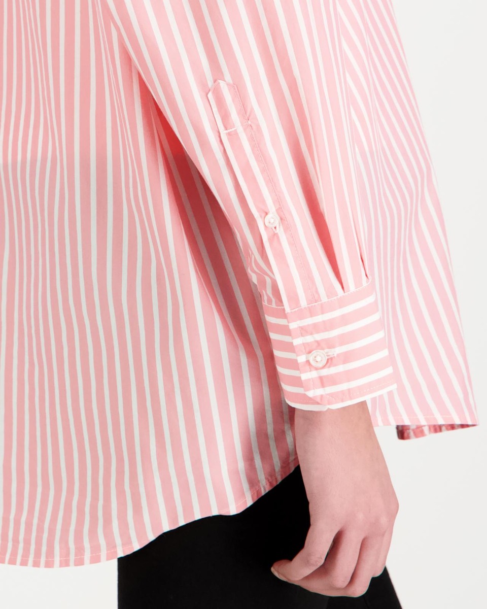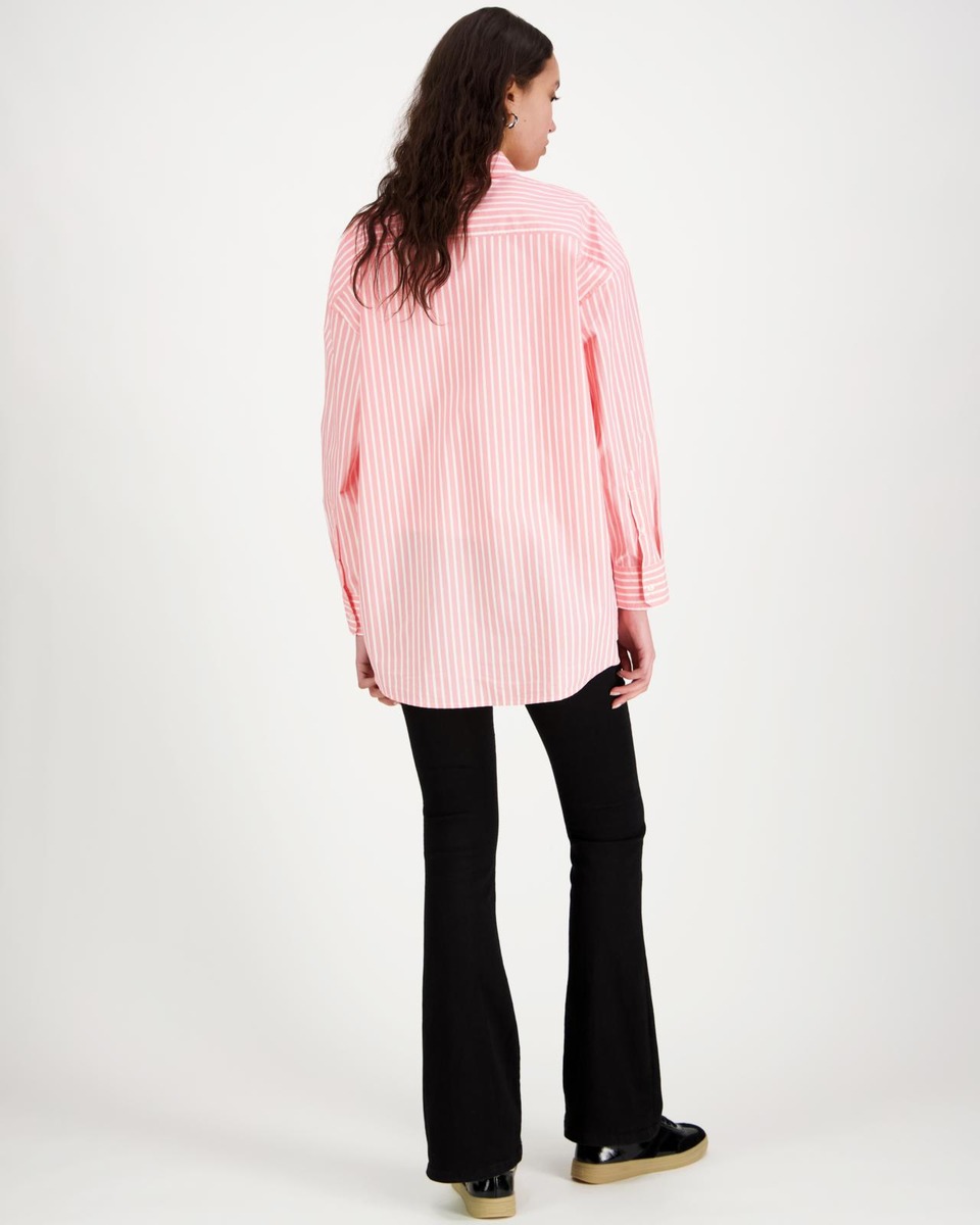 Raikas raidallinen popliinipaita jossa rennompi oversize -mitoitus. Materiaalissa käytetty regeneratiivista puuvillaa ja kierrätettyä polyamidia.