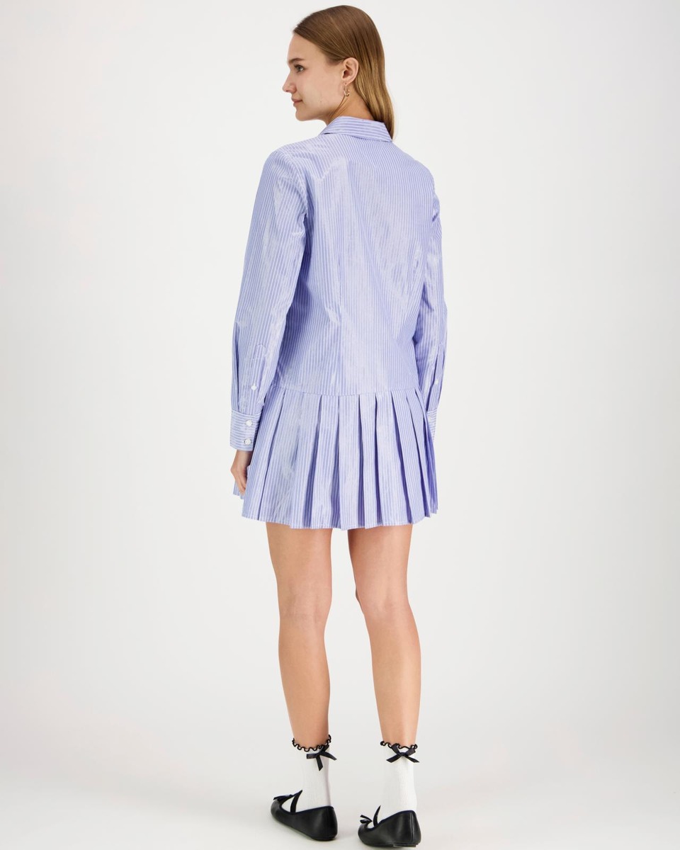 Upea juhlakauden monikäyttövaate, paitamekko välkehtivä metallikuitua sisältävä kangas ja vekattu helmaosa.