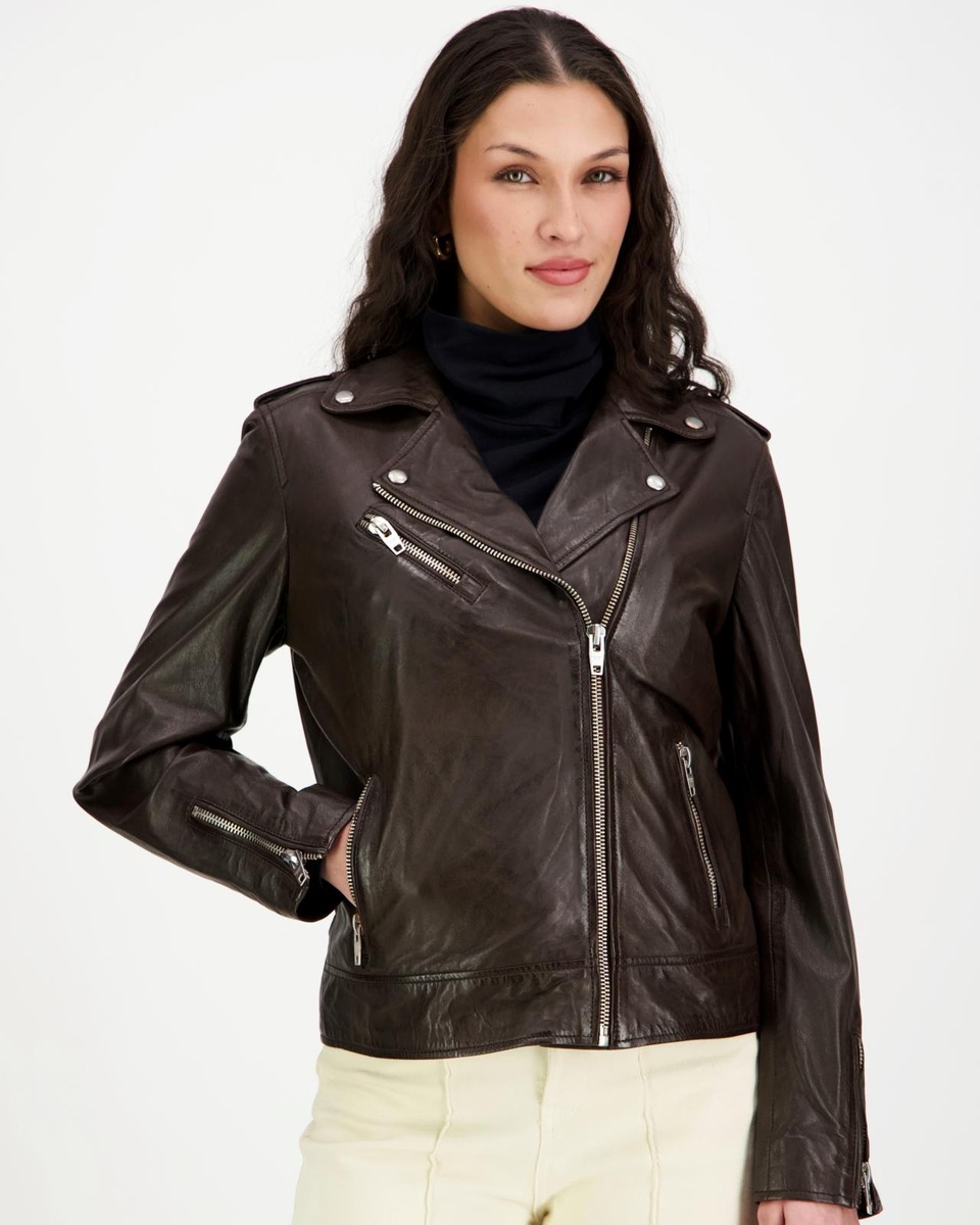 Yaya on täydellinen yhdistelmä chic-tyylistä hienostuneisuutta ja ajatonta särmikkyyttä, valmistettu pehmeästä lampaannahasta. Imartelevaan istuvuuteen suunniteltu takki hurmaa yksityiskohdillaan – siinä on kolme vetoketjutaskua, hihavetoketjut sekä koristeelliset metallinapit, jotka tuovat sekä käytännöllisyyttä että näyttävyyttä. Monipuolisen tyylikäs Yaya sopii yhtä hyvin kepeän kesämekon kuin suosikkifarkkujesi kanssa.