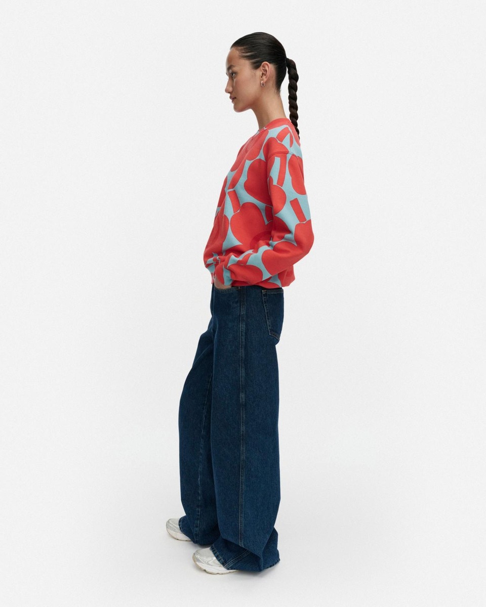 Puuvillacollegesta valmistetussa Leiot-collegepaidassa on rento istuvuus ja Unikko-kuosi. Collegepaidassa on resorikantilla huoliteltu pyöreä pääntie ja hihansuissa sekä helmassa leveät resorit.Tuotteen puuvilla on luomupuuvillaa.Luovuutta ja rohkeutta symboloiva Unikko syntyi aikana, jolloin Marimekon kuviomaailmaan ei juuri kuulunut kukkia. Maija Isolaa kukka-aihe kuitenkin kiinnosti, ja hän päätti suunnitella kokonaisen sarjan uudenlaisia vahvoja kukkakuoseja.