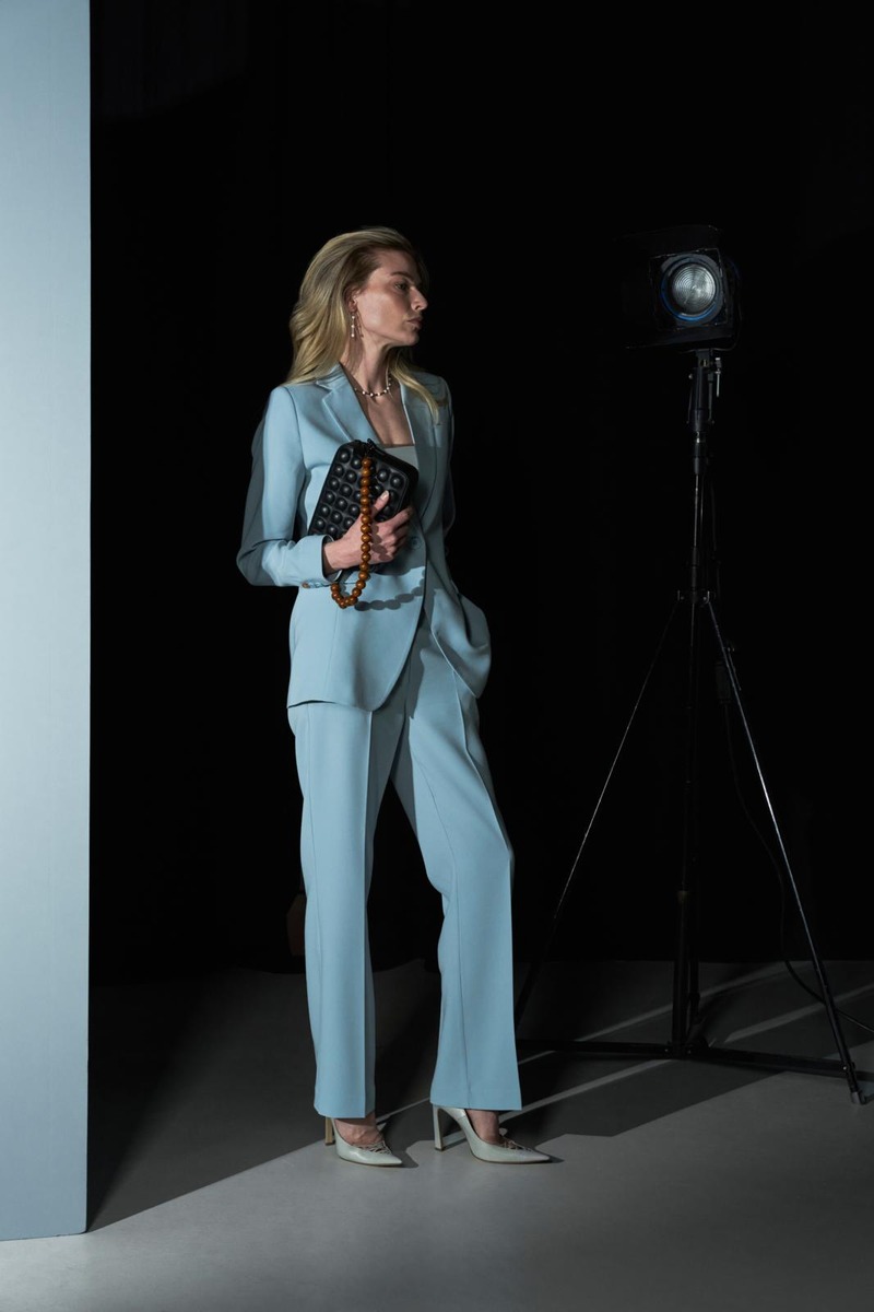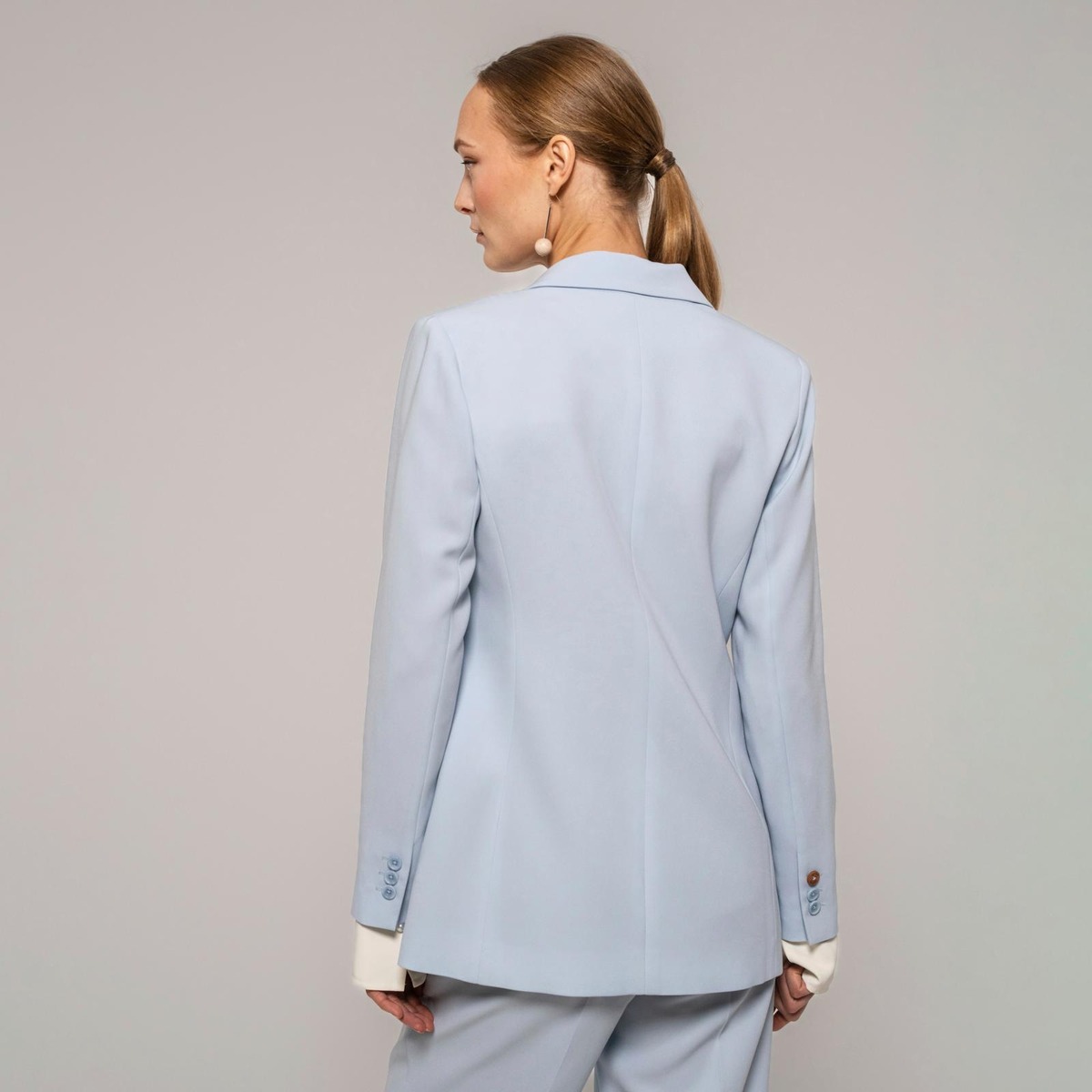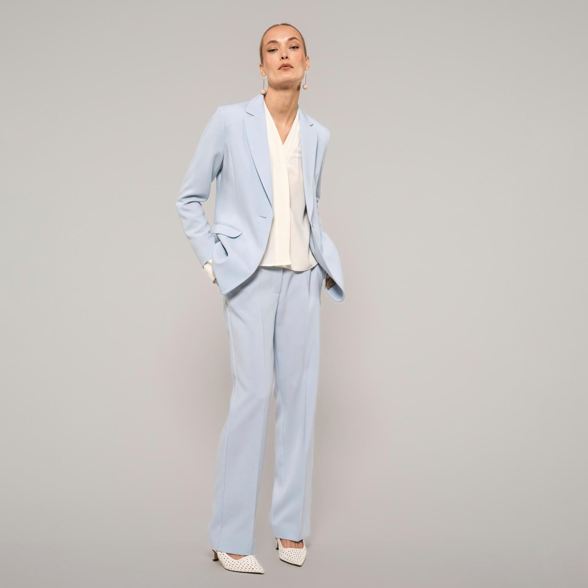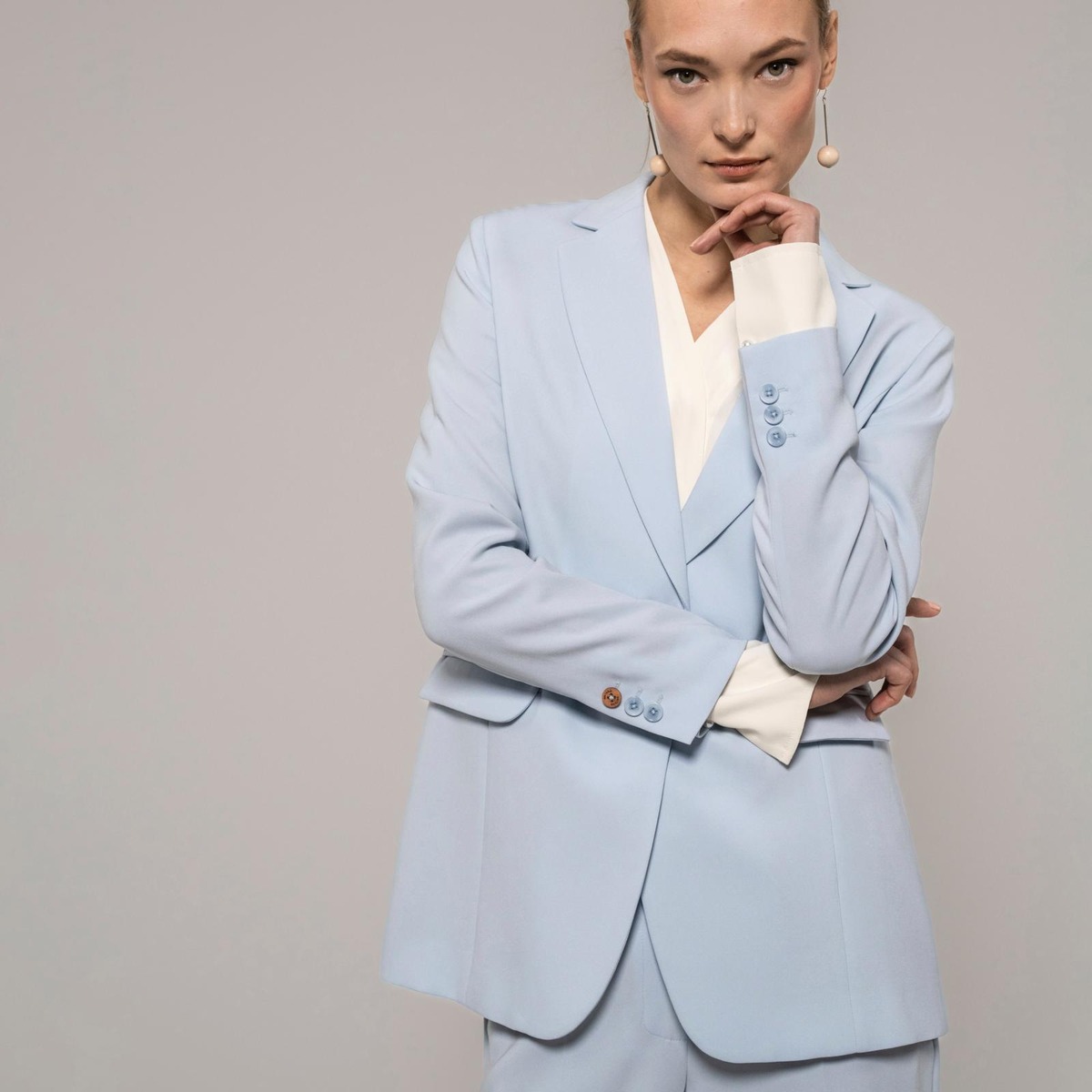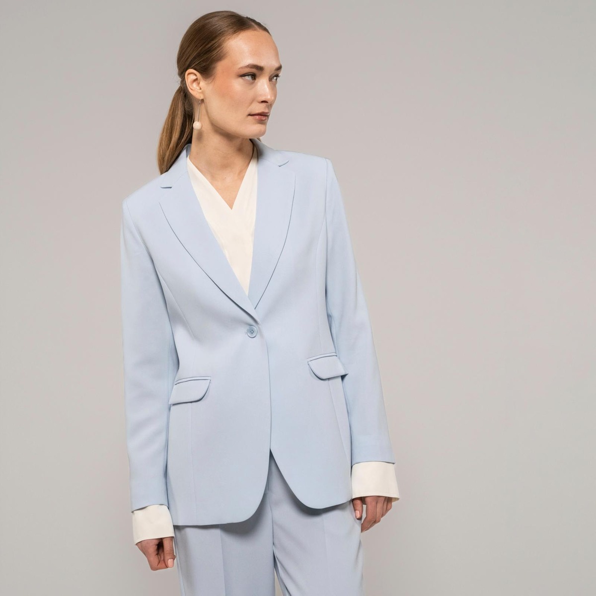 Klassinen yksirivinen bleiseri, joka on kevyesti muotoonommeltu. Sola-bleiserissä on edessä upotetut taskut, jakardikuvioitu vuori ja täyspitkät hihat. Toisessa hihansuussa puunappi. Olka–helmamitta koossa S: 75,5 cm. Suunniteltu Suomessa.