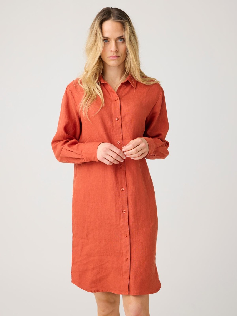 Knowledge Cotton Apparel, erinomaisella istuvuudella ja miellyttävällä 6 laadukkaalla materiaalilla kruunattu pellavainen mekko. 100% Luomupellavaa.