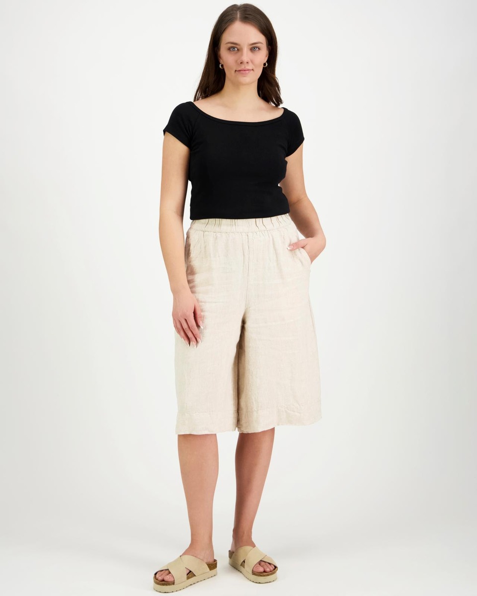 Knowledge Cotton Apparel, erinomaisesti istuvat ja äärimmäisen mukavat & laadukkaat pellavaculotet, korkea vyötärö ja leveät lahkeet. Luomupellavaa.