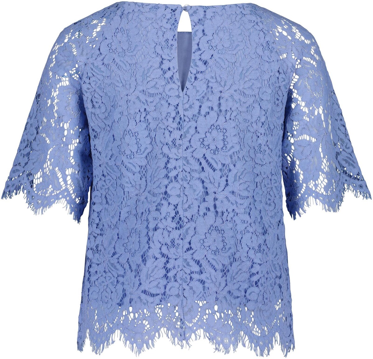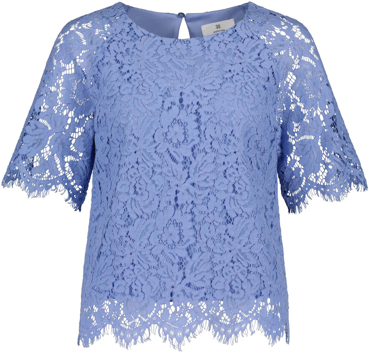 Aventuran kaunis lyhythihainen pitsipusero on ajaton ja tyylikäs yläosa juhlavampaan pukeutumiseen. Hihansuissa ja helmassa kaunis reuna. Puserossa on vuori ja takana niskassa avattava nappikiinitys.
