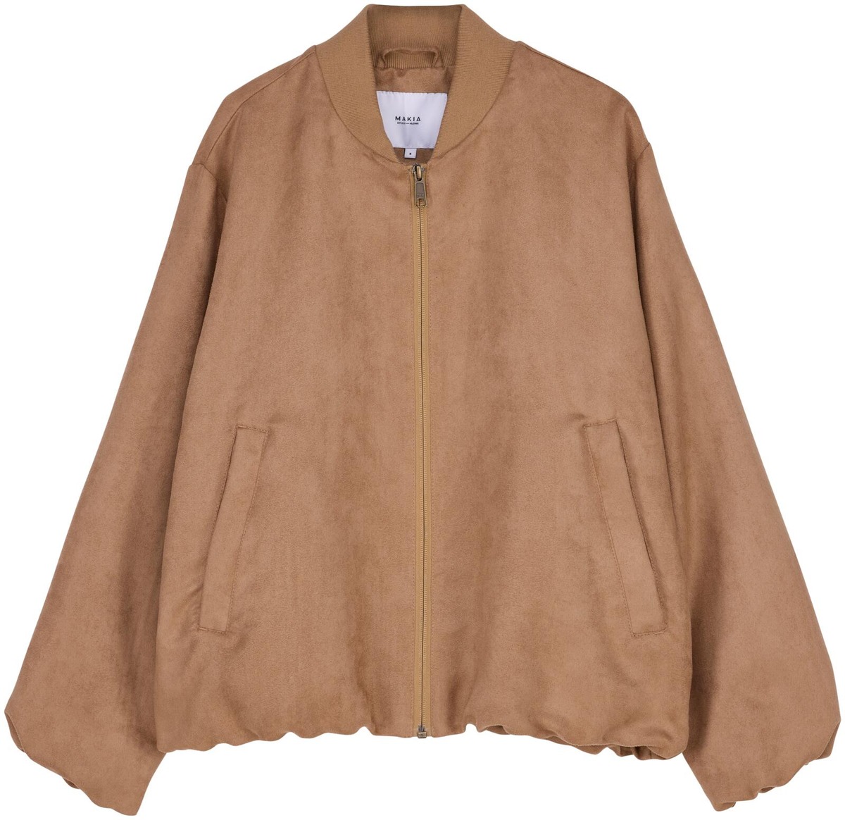 Normaalin mitoituksen bomber-tyylinen takki. Kevyt Vera Jacket on valmistettu pehmeästä mokkanahkaa jäljittelevästä keinomateriaalista.