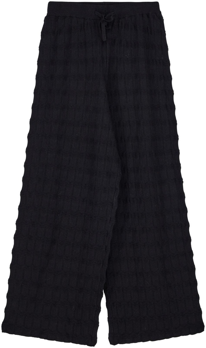 Paneelineulotut housut, joissa on normaali mitoitus. Marie Knitted Pants -housuissa on suora lahje ja joustava vyötärö.